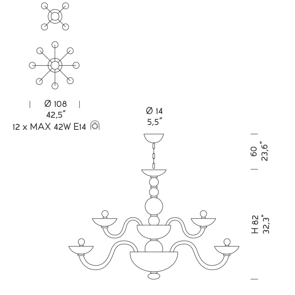 Leuchtmittel (nicht enthalten) : 12 x MAX 42W E14