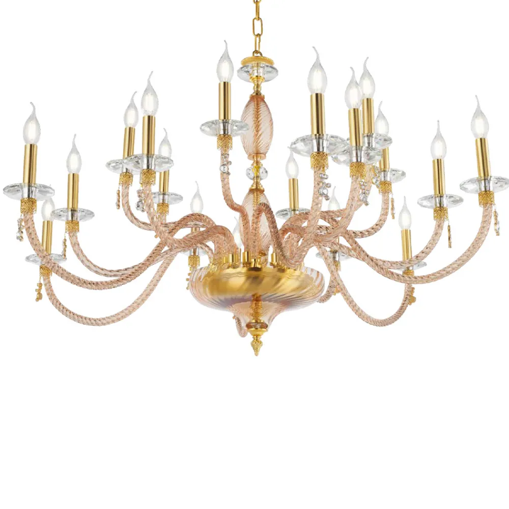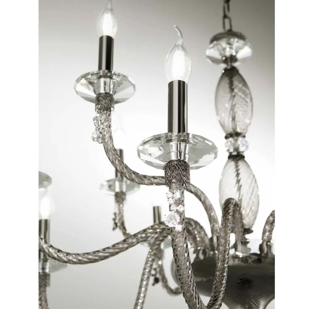 Der 18-flammige Kronleuchter ist ein luxuriöses Beleuchtungszubehör , das vollständig in Italien aus mundgeblasenem Glas von höchster Qualität mit Metallic- Finish hergestellt wird.
