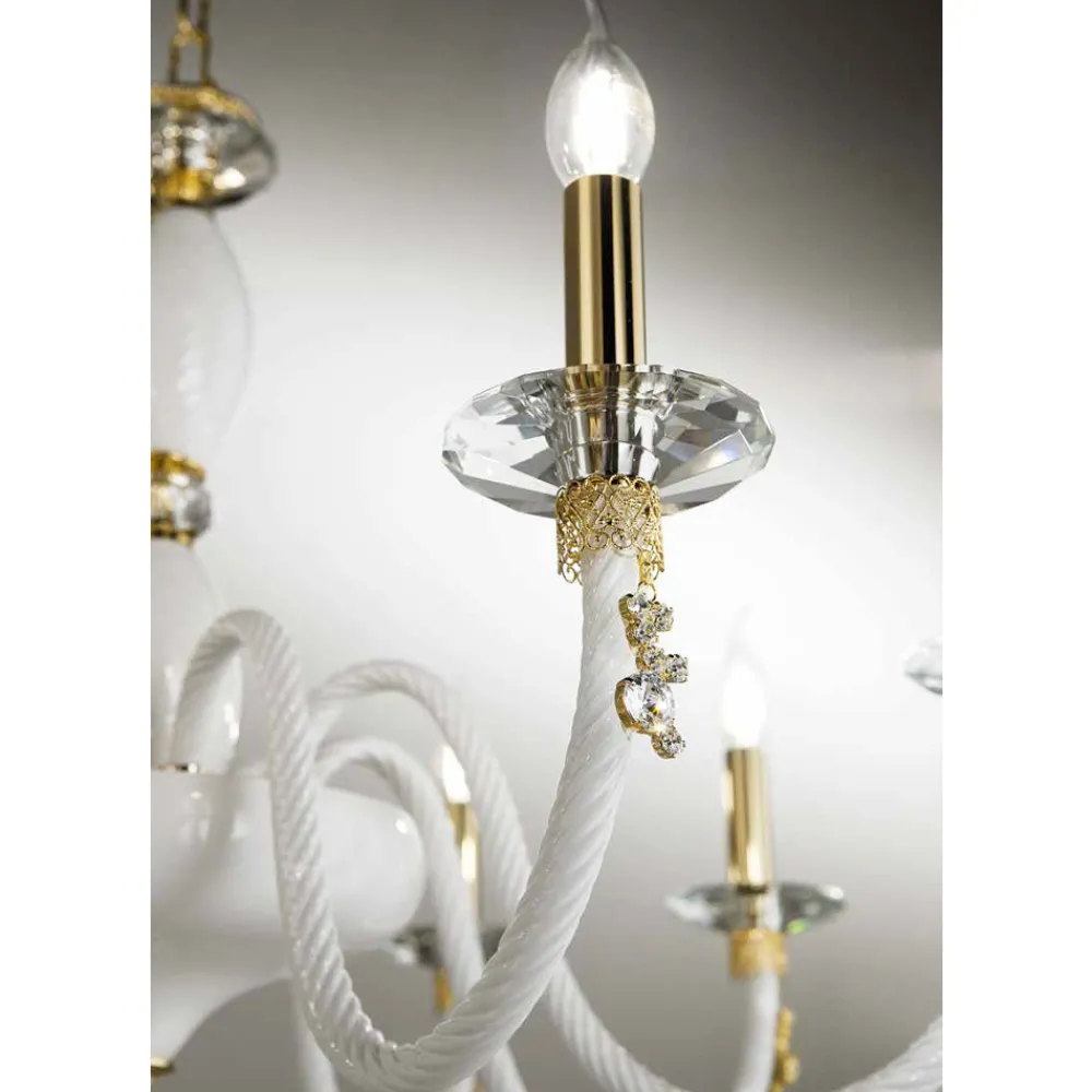 Kronleuchter mit 18 Lichtern aus mundgeblasenem Glas und Juwelendetails, italienischer Luxus.