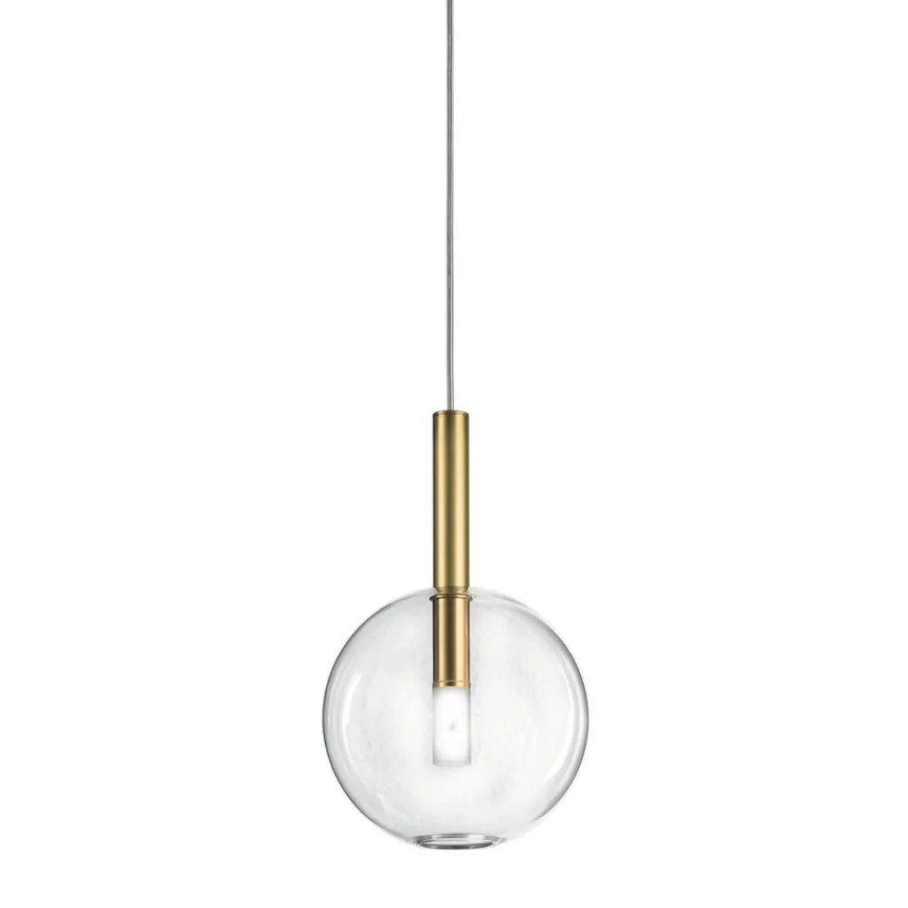 Pendelleuchte aus natürlichem Messing und transparentem Glas in verschiedenen Formen mit längenverstellbarem Kabel, vollständig in Italien hergestellt.
