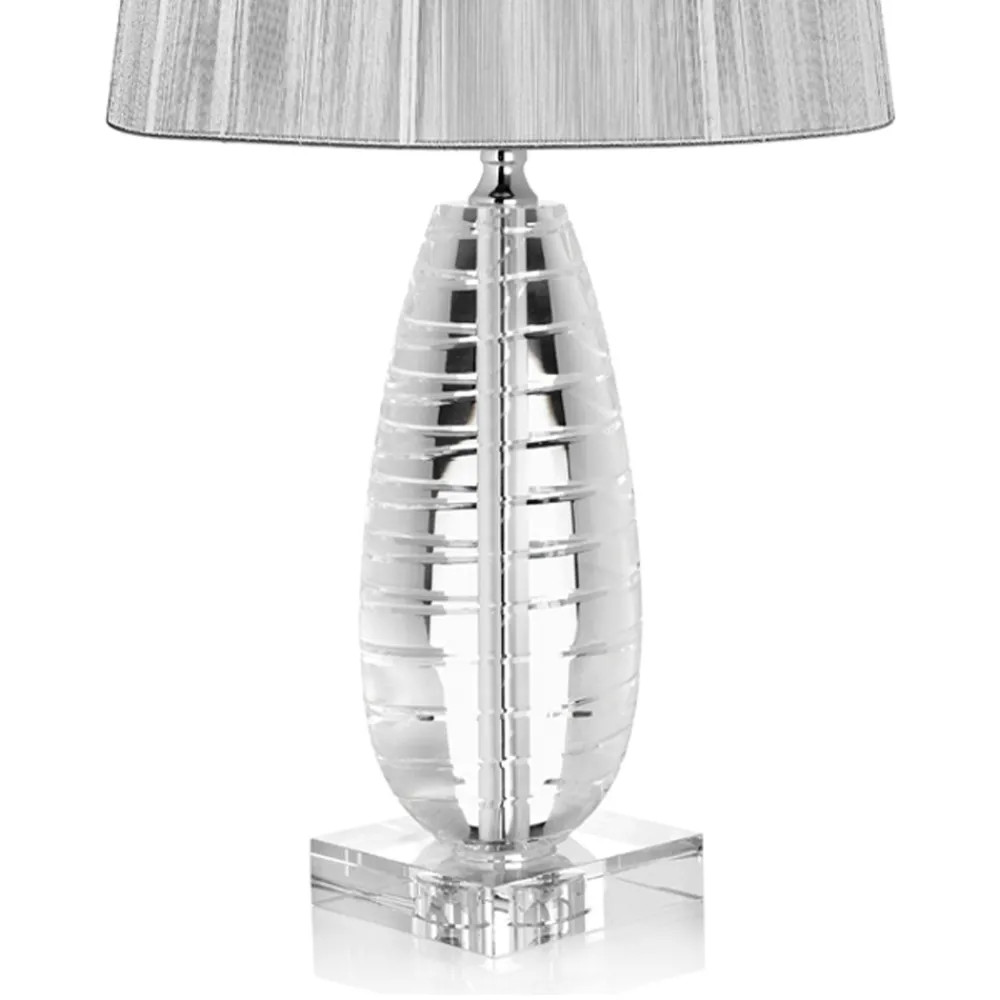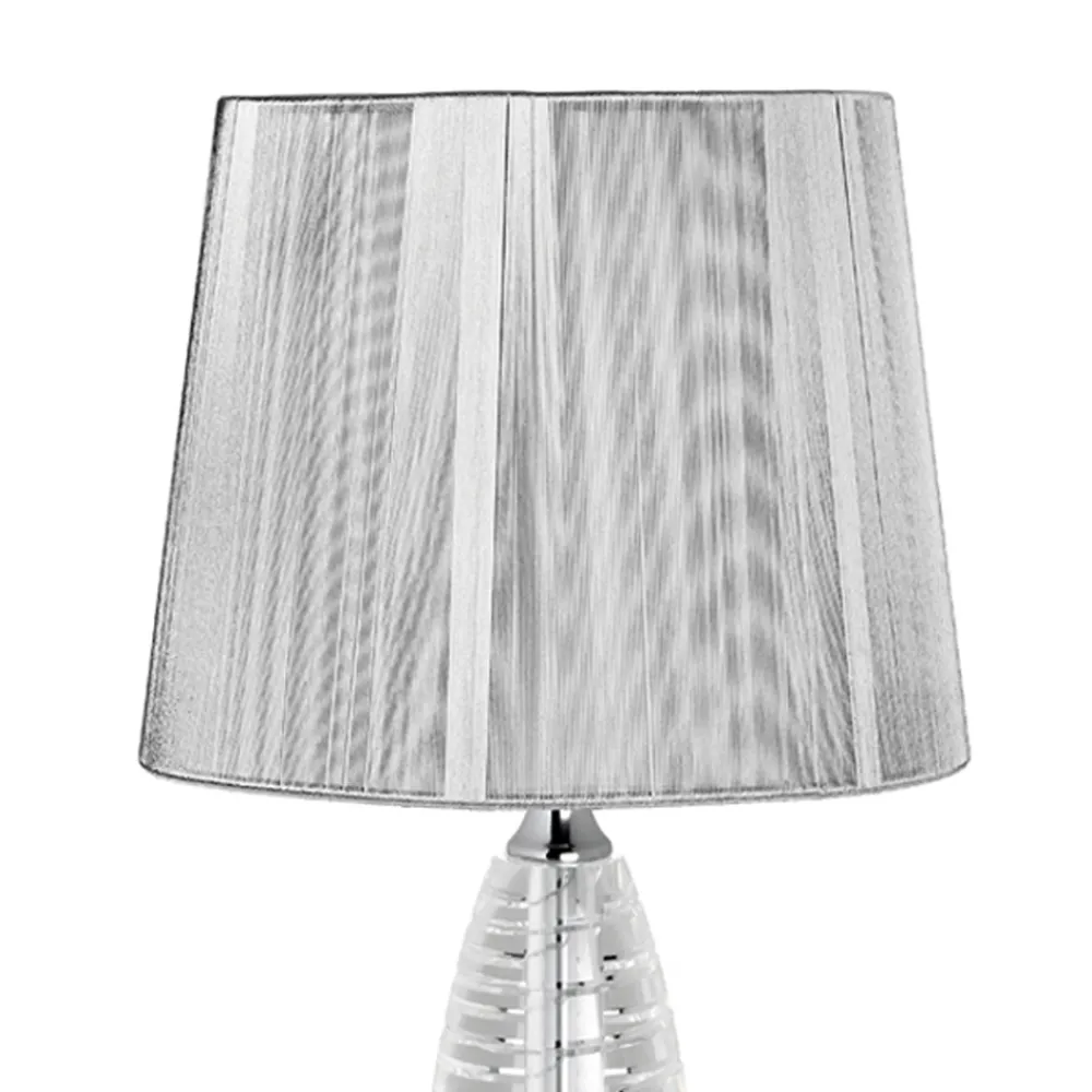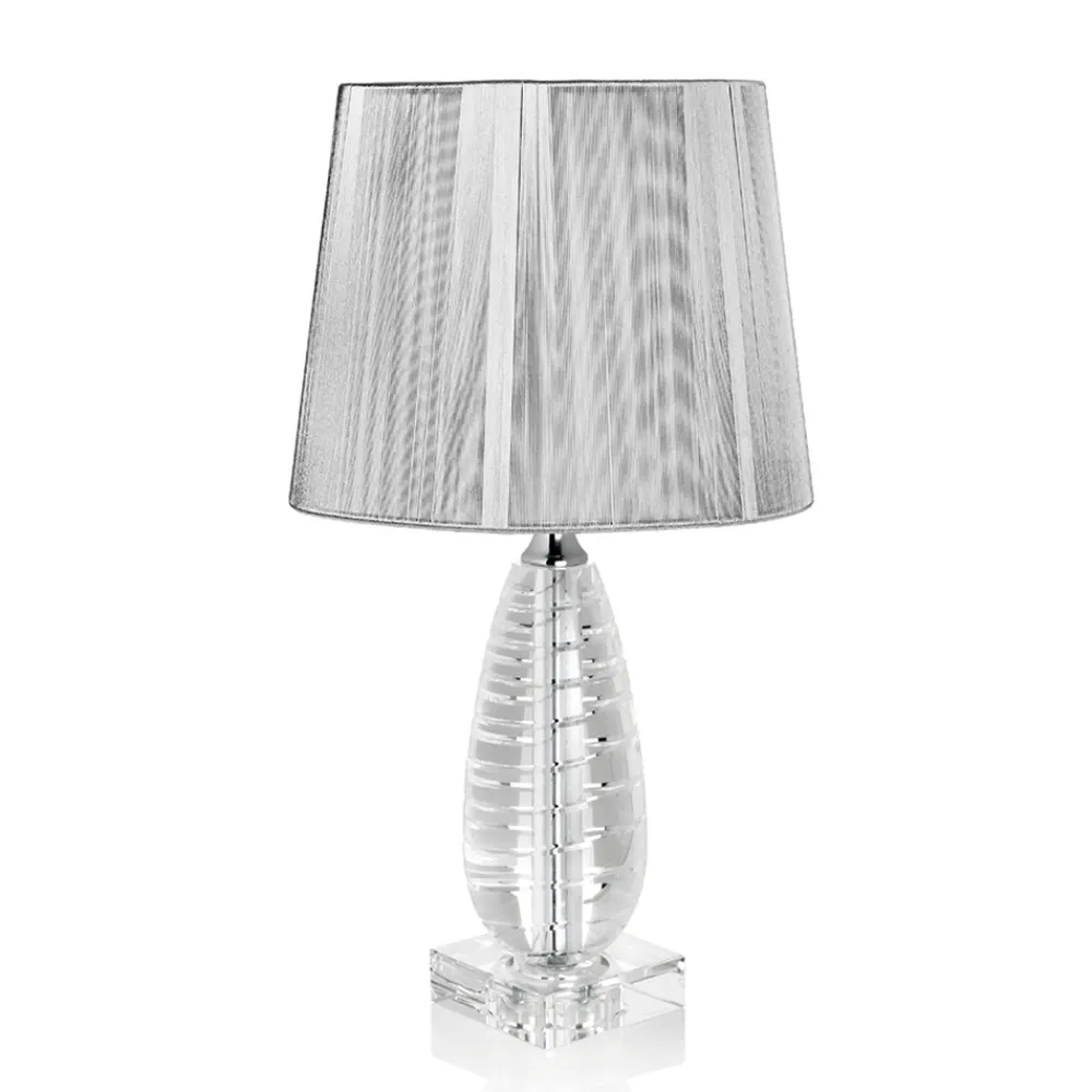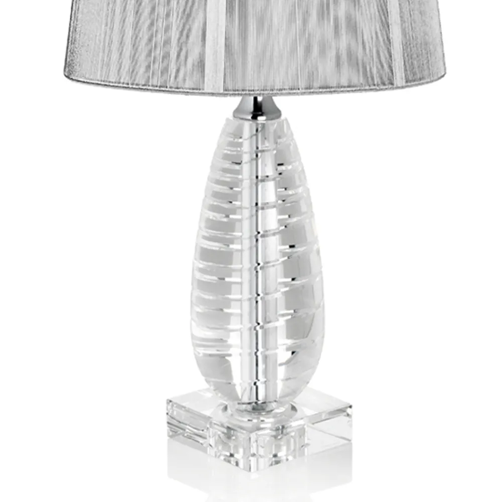 Die Tischleuchte hat einen schönen Glanz Design mit der Basis von Edelbearbeitetes Kristall und zylindrischen Lampenschirm in Elfenbein Stoff.