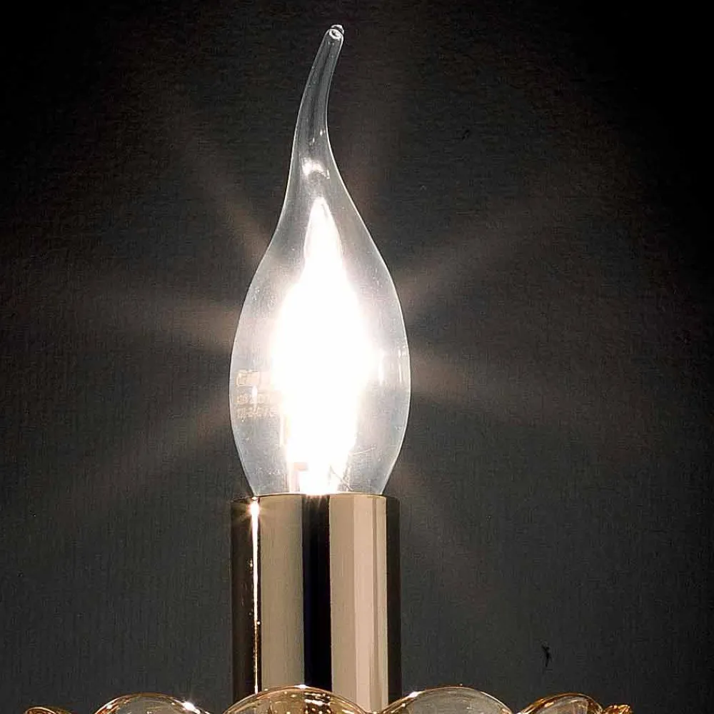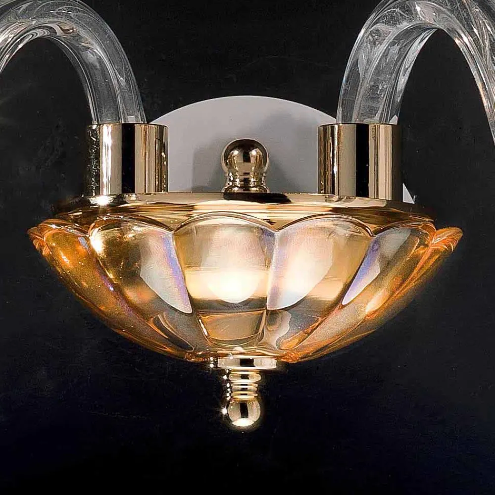 Wandlampe in Italien in Glas und Bernstein Kristall mit Gold-Finish.