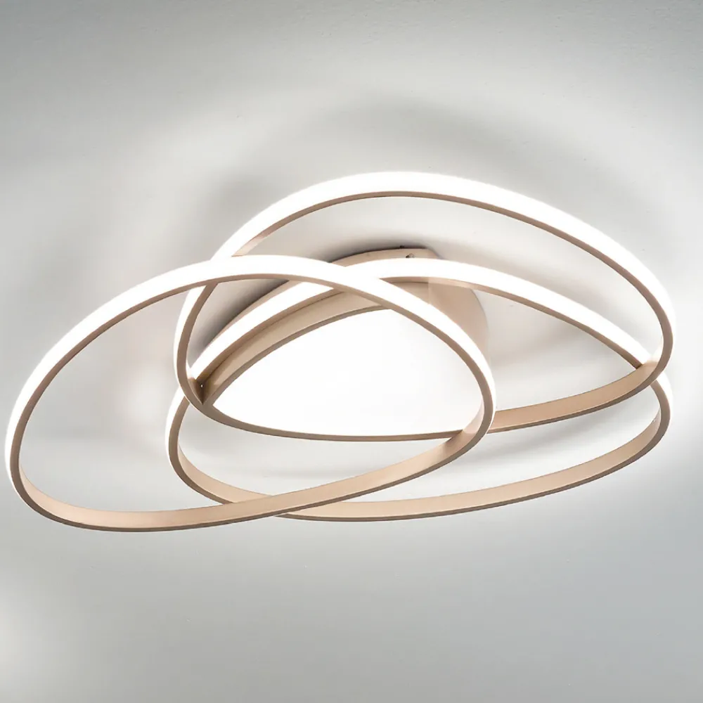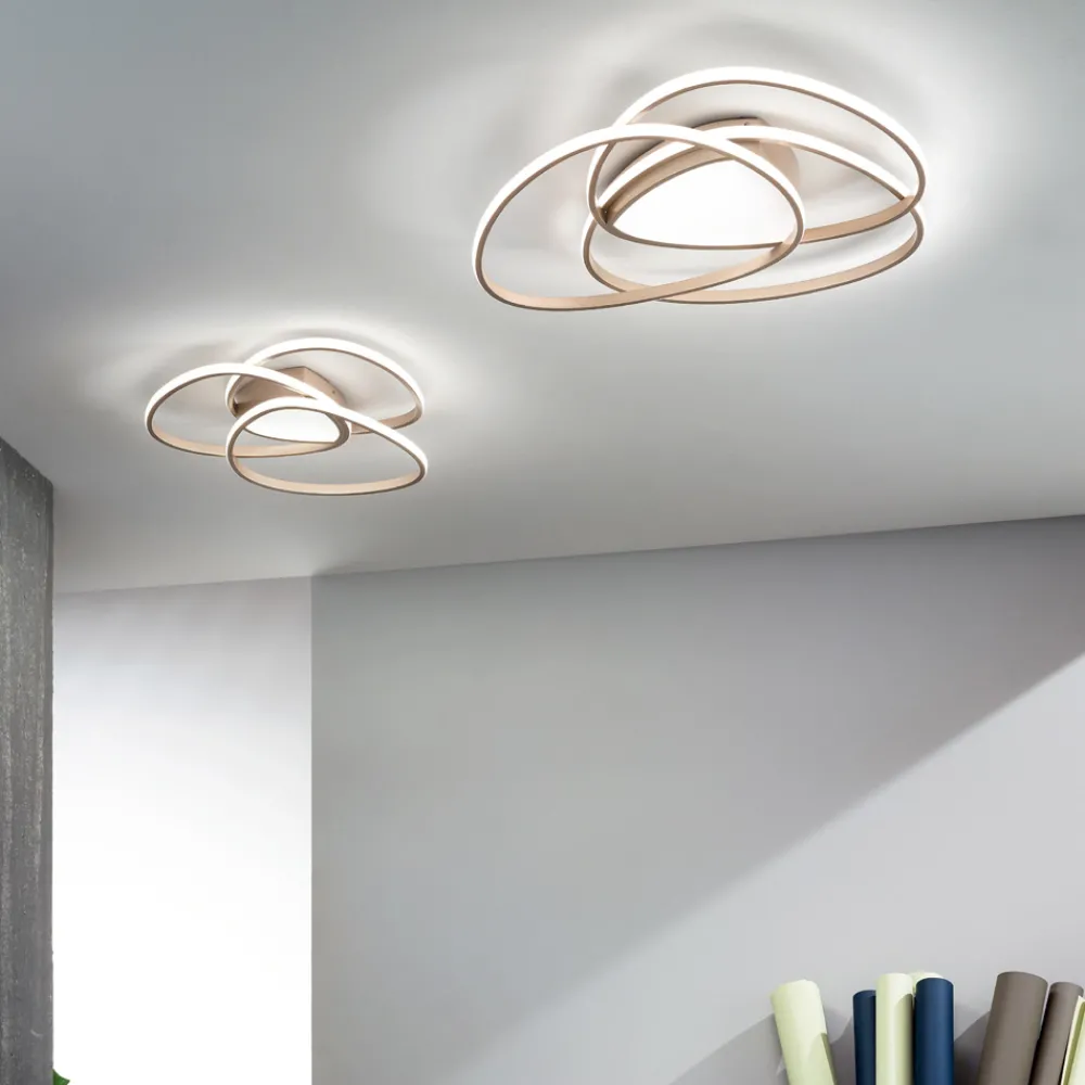 Moderne dimmbare LED-Deckenleuchte mit Metallstruktur.