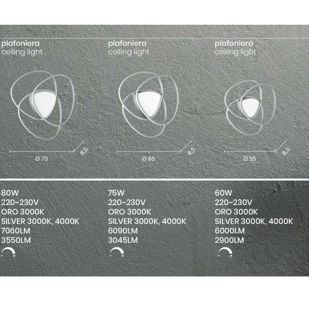- Durchmesser 55 x H 8,5 cm (LED 60W 220-230V 3000K 6000LM).
