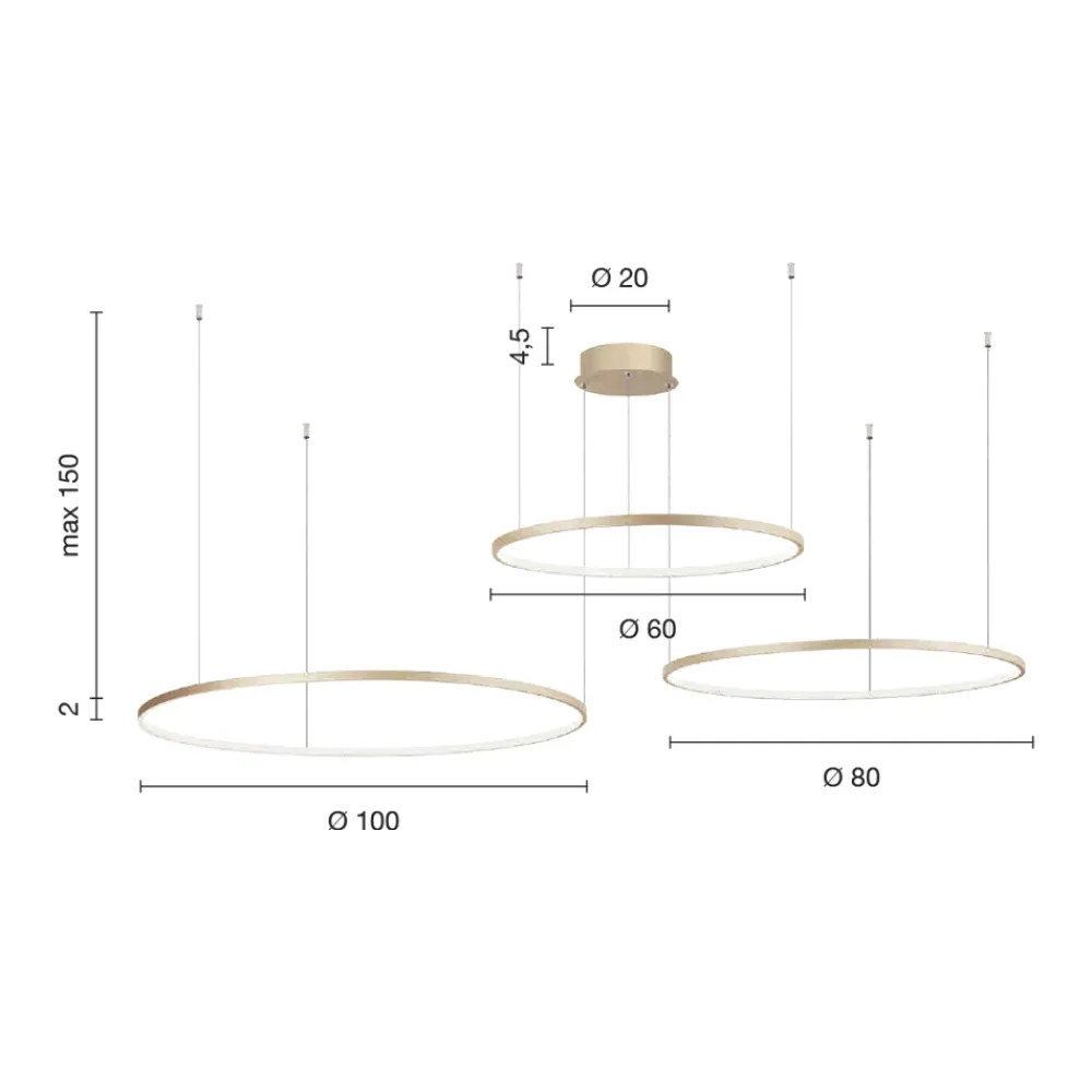 - 3 Lichter: Durchmesser 100 cm / Durchmesser 80 cm / Durchmesser 60 cm x Höhe 2 cm