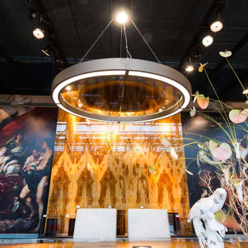 Moderner Kronleuchter mit bronzefarbener Stahlstruktur mit kreisförmiger Form, in der sich eine gekoppelte Glasplatte mit einem Einsatz aus Canaletto-Walnussholz befindet . Hergestellt in Italien durch die Verwendung hochwertiger Rohstoffe , bietet diese Ergänzung eine originelle und faszinierende Idee der Beleuchtung, die Eleganz und Zeitgenossenschaft verkörpert. Seine Besonderheit ist die wunderbare Kombination ausgewählter Farben und Oberflächen, die ein wahres Kunstwerk zum Leben erwecken, das dank der Begegnung zwischen der Modernität von Metall, der zeitlosen Eleganz des Glases und den wunderbaren Farben des jeden Bereich des Hauses revolutionieren kann Holz und seine Maserung. Die Form und die Abmessungen, die ihre Ästhetik unterstreichen, machen sie zu einer perfekten Lösung, um große Räume wie Esszimmer oder Wohnzimmer zu beleuchten, wo sie die Möbel mit einer raffinierten und innovativen Note vervollständigt und gleichzeitig eine herrliche warme und einladende Atmosphäre schafft.