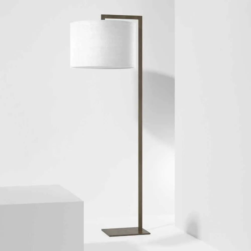 Diese Stehlampe wird vollständig in Italien hergestellt und hat eine Metallstruktur mit einem weißen Leinenlampenschirm . Dank seiner essentiellen und harmonischen Linien ist dieses Einrichtungszubehör eine besonders vielseitige Lösung, die die Einrichtung von Umgebungen mit einem modernen Geschmack auf diskrete und raffinierte Weise bereichern und vervollständigen kann. Die Verwendung von tadellos verarbeiteten Qualitätsrohstoffen ermöglicht es, ein echtes Designobjekt zu erhalten, das Funktionalität und den grundlegenden dekorativen Aspekt vereint und so den Wert der umgebenden Möbel steigert.