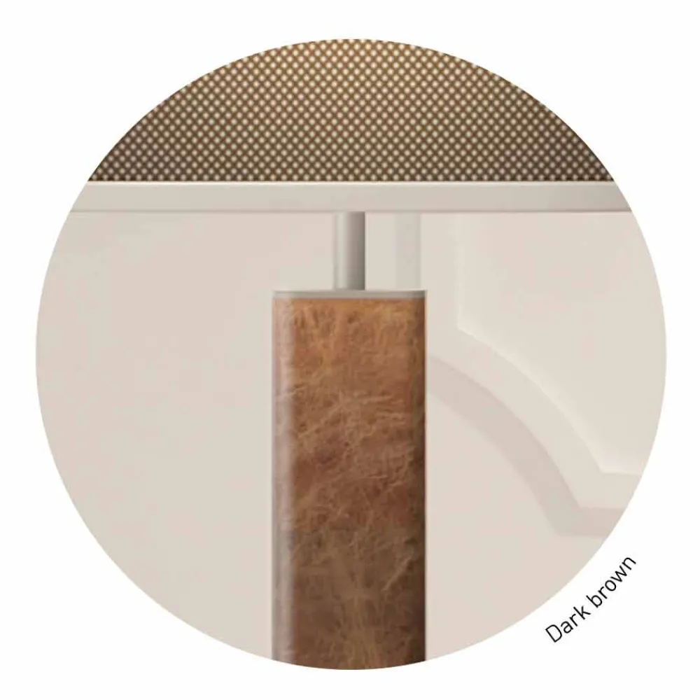 Diese Stehlampe hat eine Struktur aus Metall mit einem lederbezogenen Korpus und einem Lampenschirm aus Netz oder Leinen . Komplett in Italien, dieses Möbelstück ist eine Lösung mit einem einfachen , aber raffiniertem Design , das nicht unbemerkt bleibt im Raum dank den wunderbaren Kontrast zwischen den Materialien und ausgewählten Oberflächen. Das Ergebnis ist daher eine elegante und moderne Leuchte, die das Erscheinungsbild einer Umgebung revolutionieren kann und sie einzigartig und mit einer starken Persönlichkeit macht .
