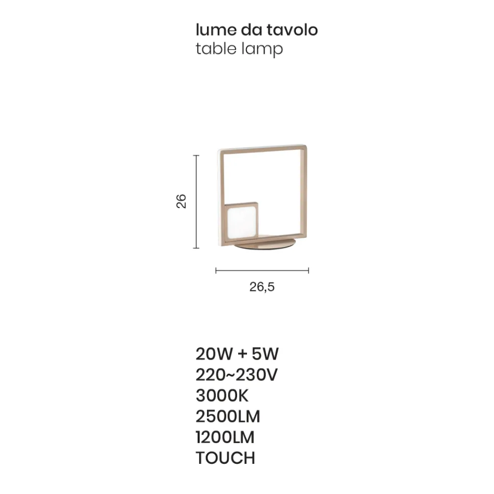 Tischlampe aus silberfarben lackiertem Metall mit integrierter dimmbarer LED-Quelle. Ein modernes Accessoire, dessen Ästhetik sich durch einfache Formen und originelle und quadratische Linien auszeichnet, konzipiert und entworfen, um Wohnräume wie Wohnzimmer, Schlafzimmer, Büros und Arbeitszimmer auf exklusive und elegante Weise zu beleuchten und einzurichten. Das raffinierte Finish unterstreicht das raffinierte Design und macht es zu einem einzigartigen Produkt seiner Art für ein Ergebnis, das sich für diejenigen eignet, die eine ästhetische Perfektion geometrischer Formen auch in ihrer Wohneinrichtung suchen.