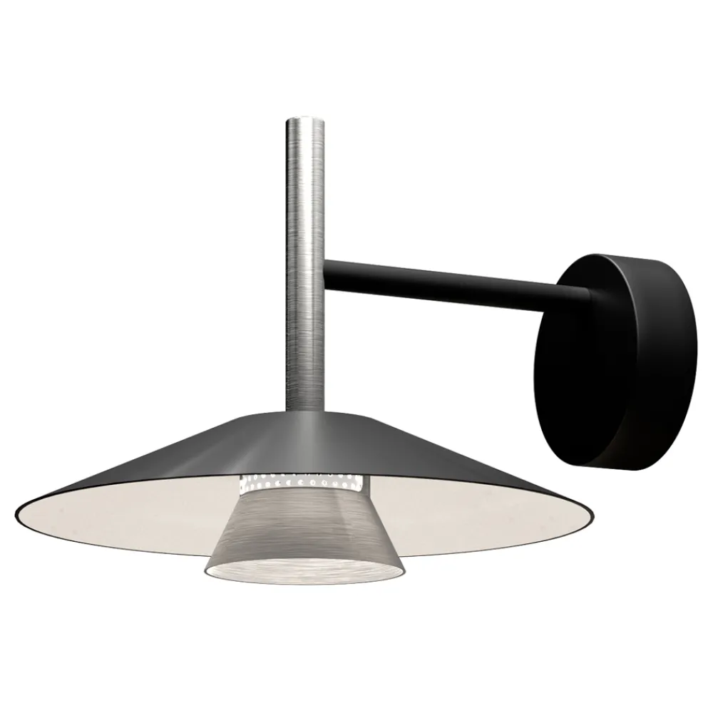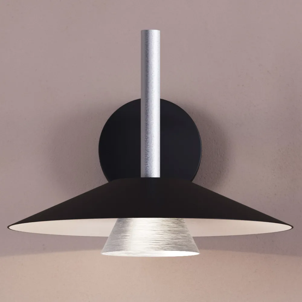 Diese Lampe ist eine perfekte Verschmelzung von zeitgenössischem Design und industrieller Eleganz und wurde für diejenigen entwickelt, die raffinierte Details und eine kühne Ästhetik lieben. Die geometrische Struktur mit einem konischen Diffusor und einer großen reflektierenden Scheibe erzeugt ein faszinierendes Spiel von Volumen und Kontrasten und sorgt für ein gerichtetes und einhüllendes Licht.