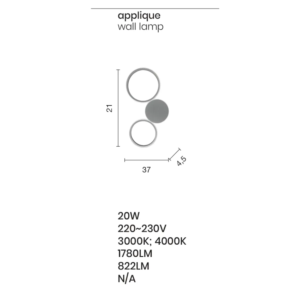 Wandleuchte mit Struktur aus gold lackiertem Metall komplett mit dimmbarer LED-Quelle. Eleganz und Originalität vereinen sich in einer modernen Komposition aus drei unterschiedlich großen Kreisen, die aneinandergefügt und außen von einem milchig-weißen Diffusor bedeckt sind, der den LED-Streifen umschließt und wundervolle Lichteffekte an den Wänden für ein Ergebnis mit starker szenografischer Wirkung erzeugt . Dank seiner kreativen Persönlichkeit und seiner modernen Seele wird es gleichzeitig eine hochwertige Beleuchtung und ein einzigartiges Dekorationselement bieten, das die Wände des Hauses mit einer exklusiven Note bereichern kann. Ein Möbelstück mit vielseitigem Charakter , das in jeder Wohnumgebung wie dem Eingang, der Küche, dem Wohnbereich oder dem Schlafzimmer installiert werden kann.