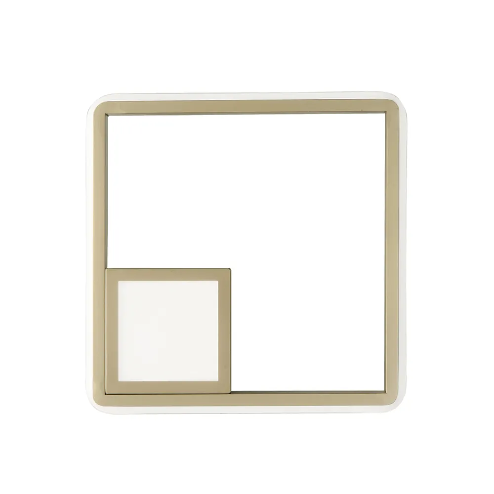 Moderne Wandleuchte aus goldfarben lackiertem Metall komplett mit integrierter dimmbarer LED-Quelle. Eine moderne Ergänzung, deren Ästhetik von einfachen Formen und quadratischen Linien geprägt ist , konzipiert und entworfen, um Wohnräume wie Eingänge, Flure, Schlafzimmer, Wohnbereiche oder Küchen auf exklusive und elegante Weise zu beleuchten und auszustatten. Das raffinierte goldene Finish unterstreicht das raffinierte Design und macht es zu einem einzigartigen Produkt seiner Art für ein Ergebnis, das sich für diejenigen eignet, die eine ästhetische Perfektion geometrischer Formen auch in ihrer Wohneinrichtung suchen. Seine Besonderheit ist die hochwertige Beleuchtung , die dank des in der Struktur eingeschlossenen LED-Streifens durch die gesamte Struktur verläuft, was sie perfekt für eine hervorragende Lichtleistung macht .