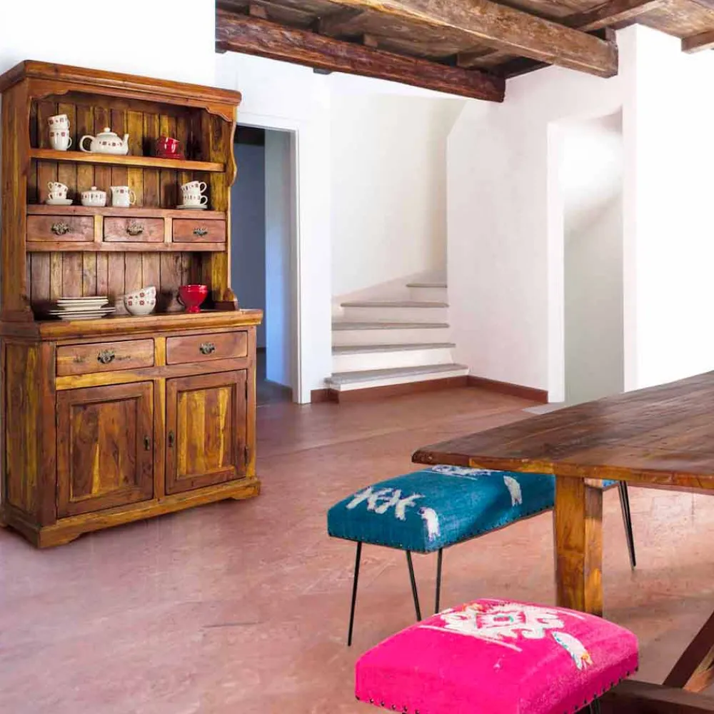 Struktur aus massivem indischem Akazienholz, rustikal und antikisiert auf Nitrocellulosebasis.