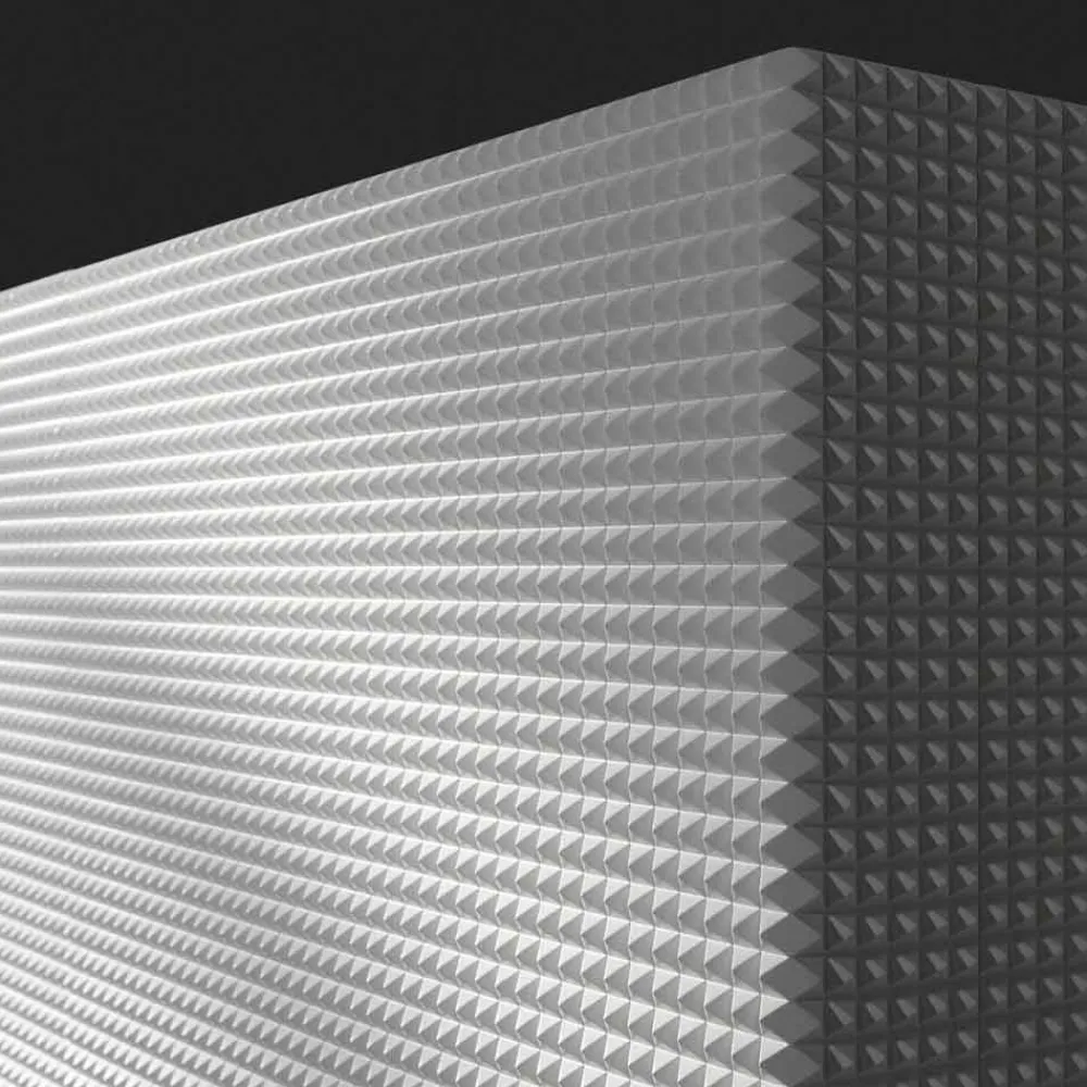 Das moderne Sideboard mit skulpturartiger Oberfläche ist in den Farben schwarz, weiss oder gold verfügbar.