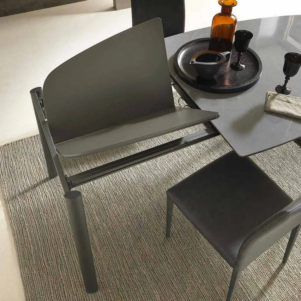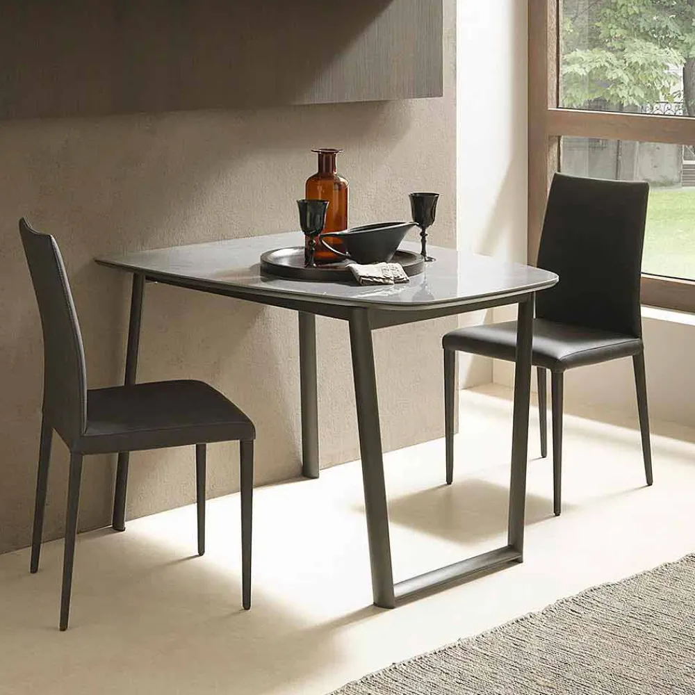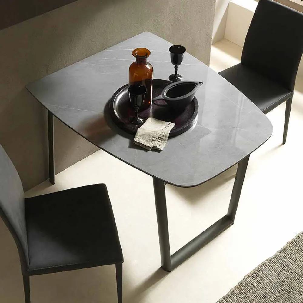 Ausziehbarer Esstisch bis 170 cm aus Metall mit Keramikplatte Made in Italy.