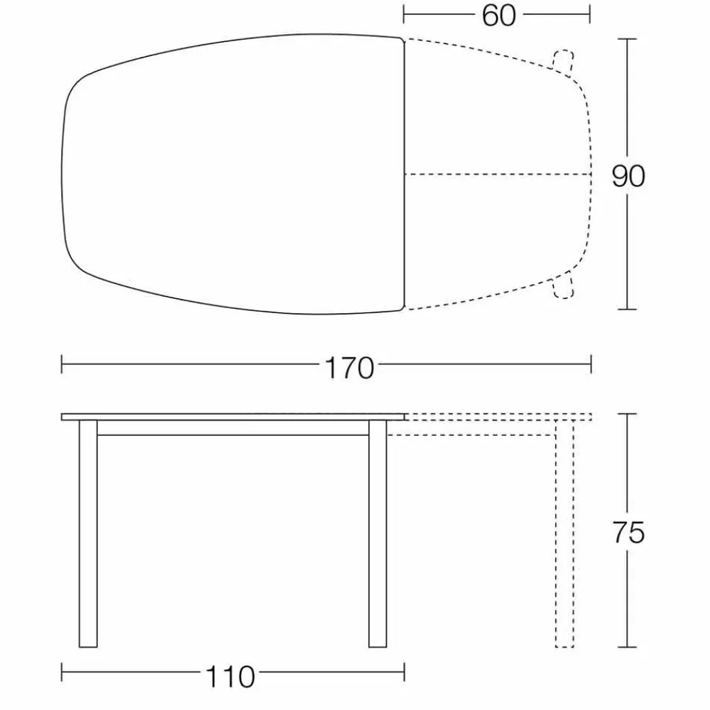 | Maße | L 110 (170) x T 90 x H 75 cm |