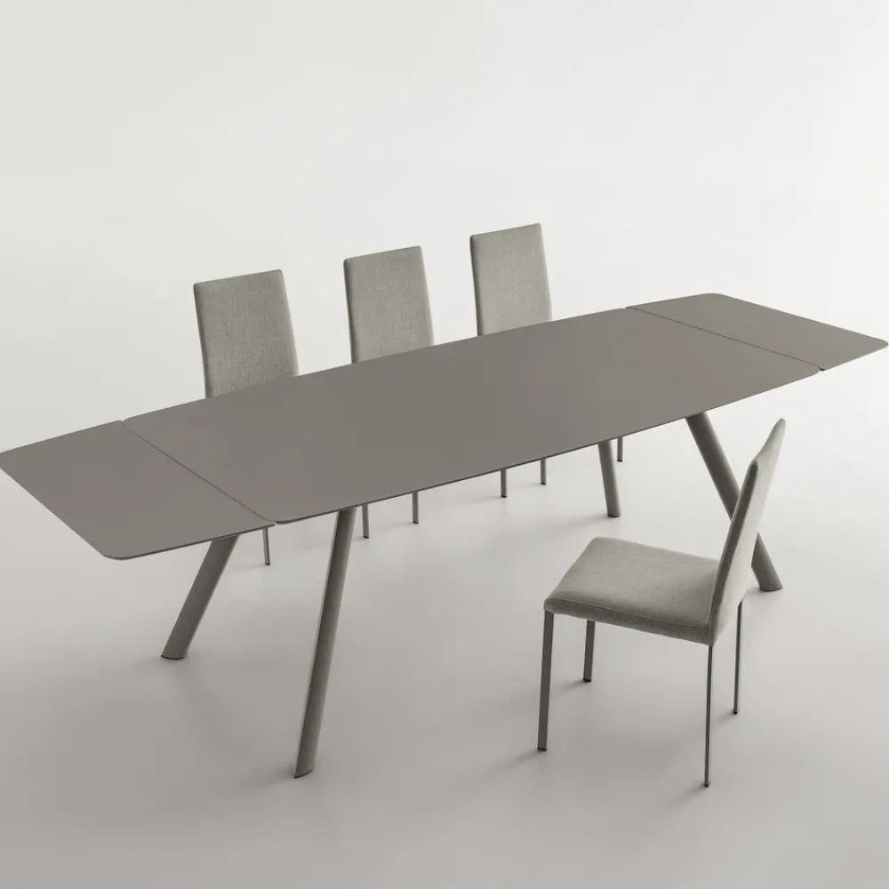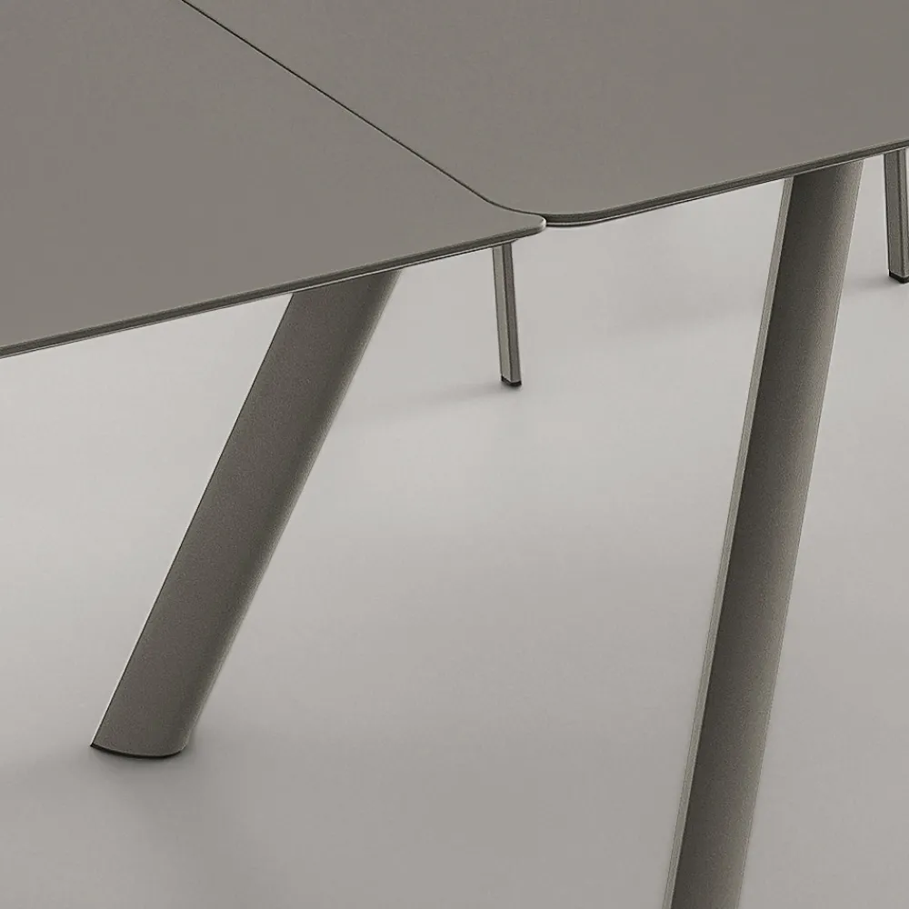 Küchentisch aus geschichtetem Fenix mit luxuriösen Aluminiumbeinen, Made in Italy.