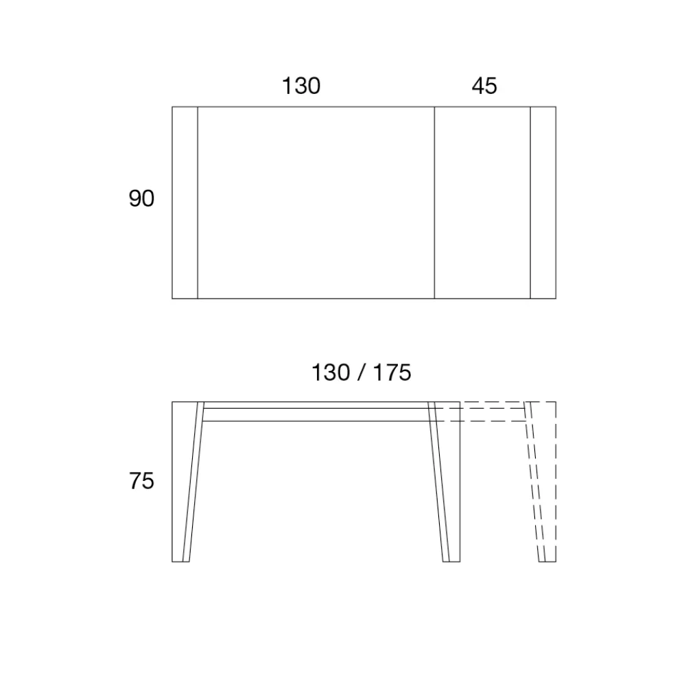 - B 130-175 x T 90 x H 75 cm – 1 Auszug