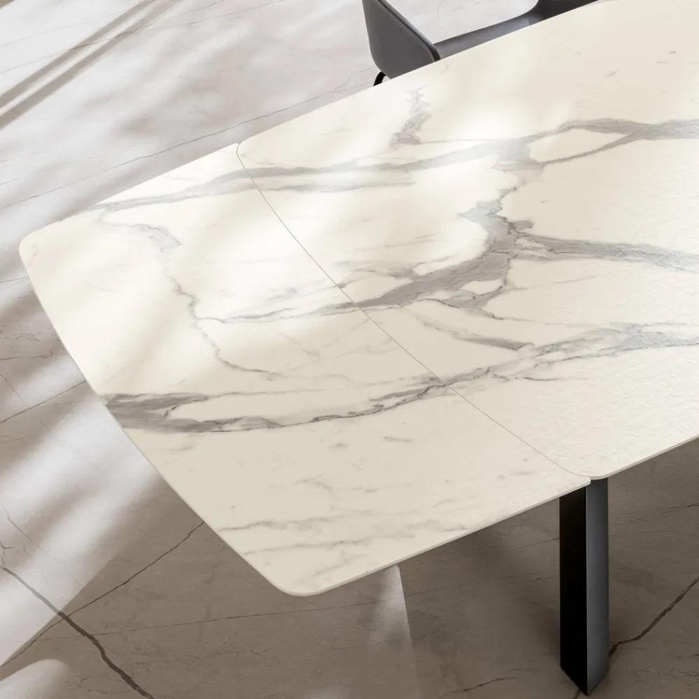 Eleganz und Alltagstauglichkeit vereinen sich in diesem ausziehbaren Tisch aus HPL und Metall , der für alle gedacht ist, die Möbel mit modernem Design und hoher Leistung wünschen.