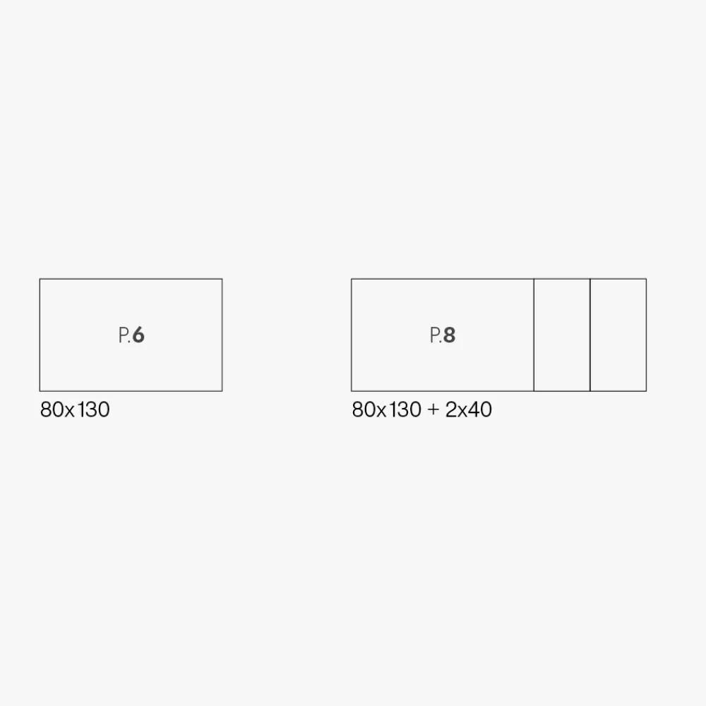 - Länge 130/210 cm x Tiefe 80 cm x Höhe 76 cm – 2 Verlängerungen 80×40 cm