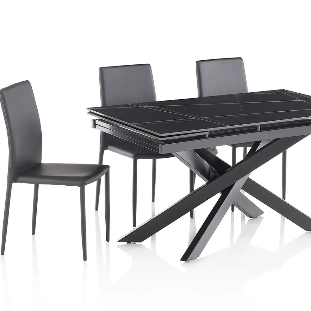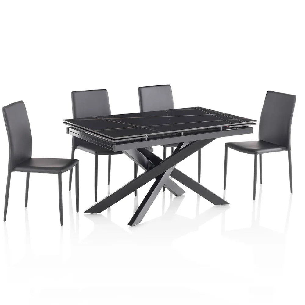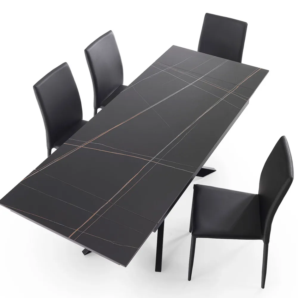 Ausziehbarer Tisch auf 200 cm aus Keramik mit Marmoreffekt und Metall mit 4 Stühlen