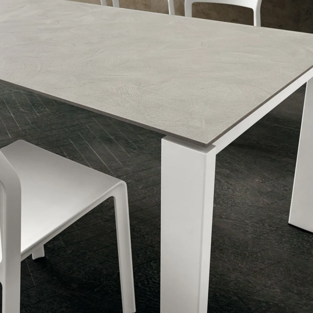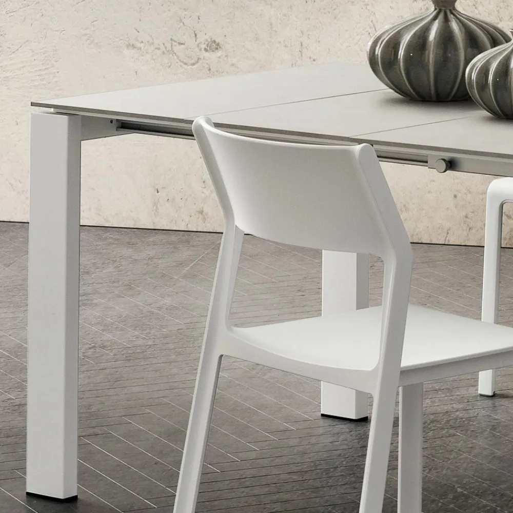 Ausziehbarer Esstisch aus hochwertigem HPL und weiß lackiertem Metall, Made in Italy.