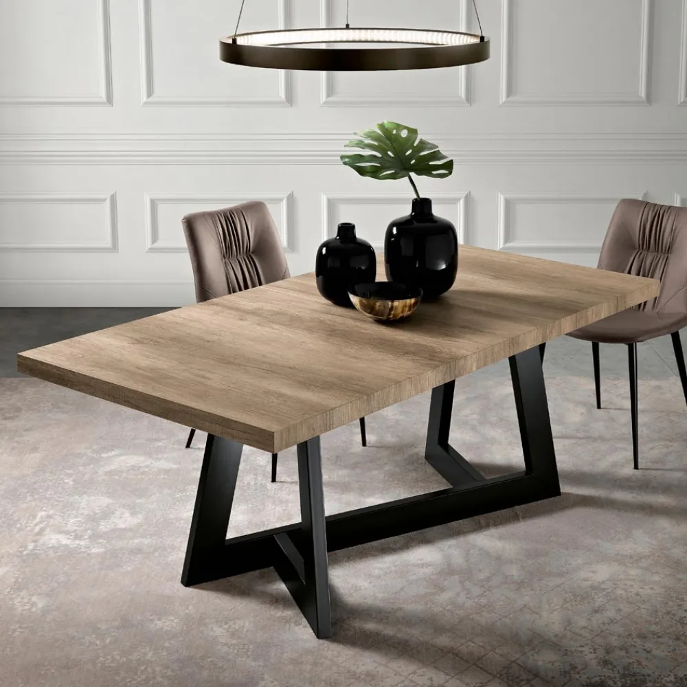 Ausziehbarer Esstisch aus Melamin und Metall Made in Italy