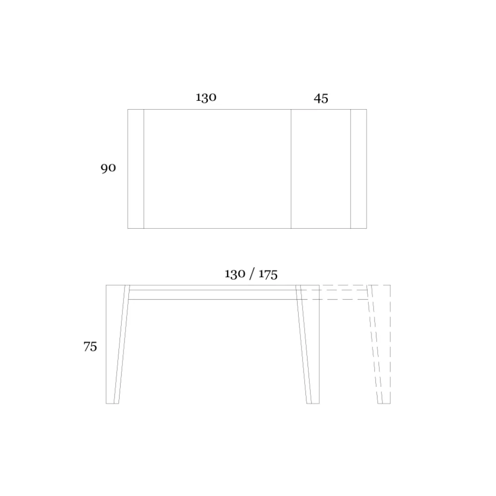- Länge: 130/175 cm x Tiefe: 90 cm x Höhe: 75 cm – 1 Verlängerung