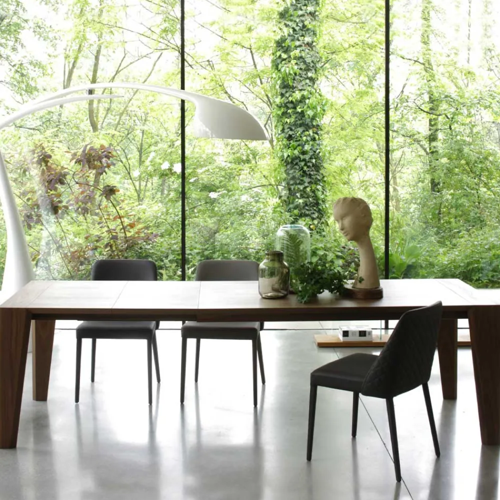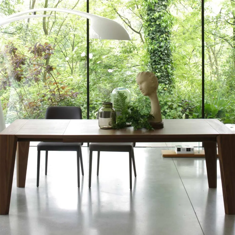 Der Tisch drückt die Essenz der Natur durch die Maserung in Canaletto-Nussbaumoptik aus, die sowohl auf der Tischplatte als auch auf den Beinen vorhanden ist. Dieses imposante und raffinierte Möbelstück bietet Vielseitigkeit mit seiner ausziehbaren Funktion, sodass Sie zwischen einer Version mit einer oder zwei Erweiterungen wählen können. Der Schiebemechanismus, der auch bei ausgezogenem Tisch sichtbar ist, sorgt für ein stimmiges Design und vereint Ästhetik und Funktionalität. Es ist mehr als nur ein Esstisch, es ist ein Kunstwerk, das die Schönheit der Natur in Ihrem Raum zelebriert.