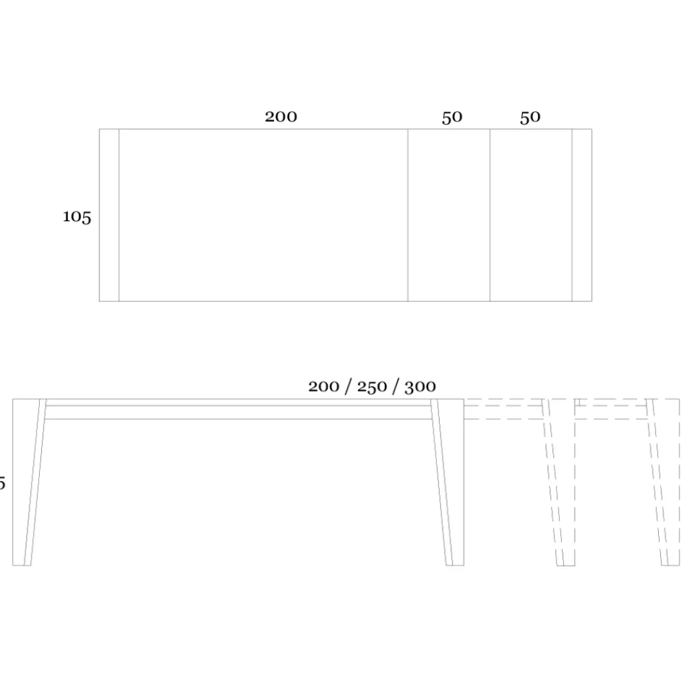 - Länge: 200/250/300 cm x Tiefe: 105 cm x Höhe: 75 cm – 2 Verlängerungen