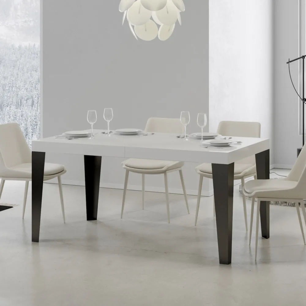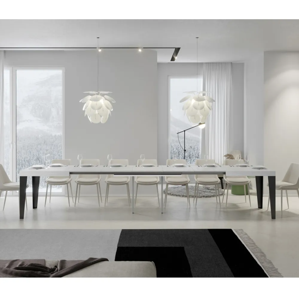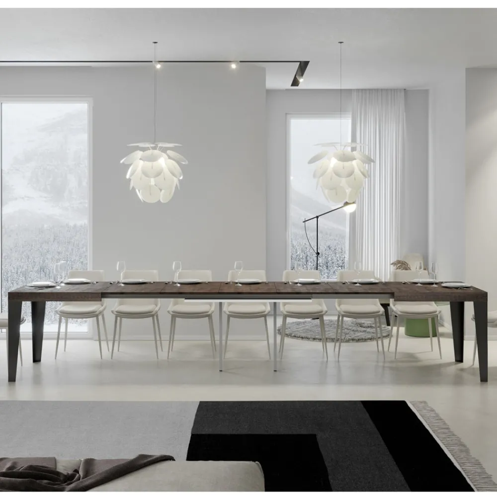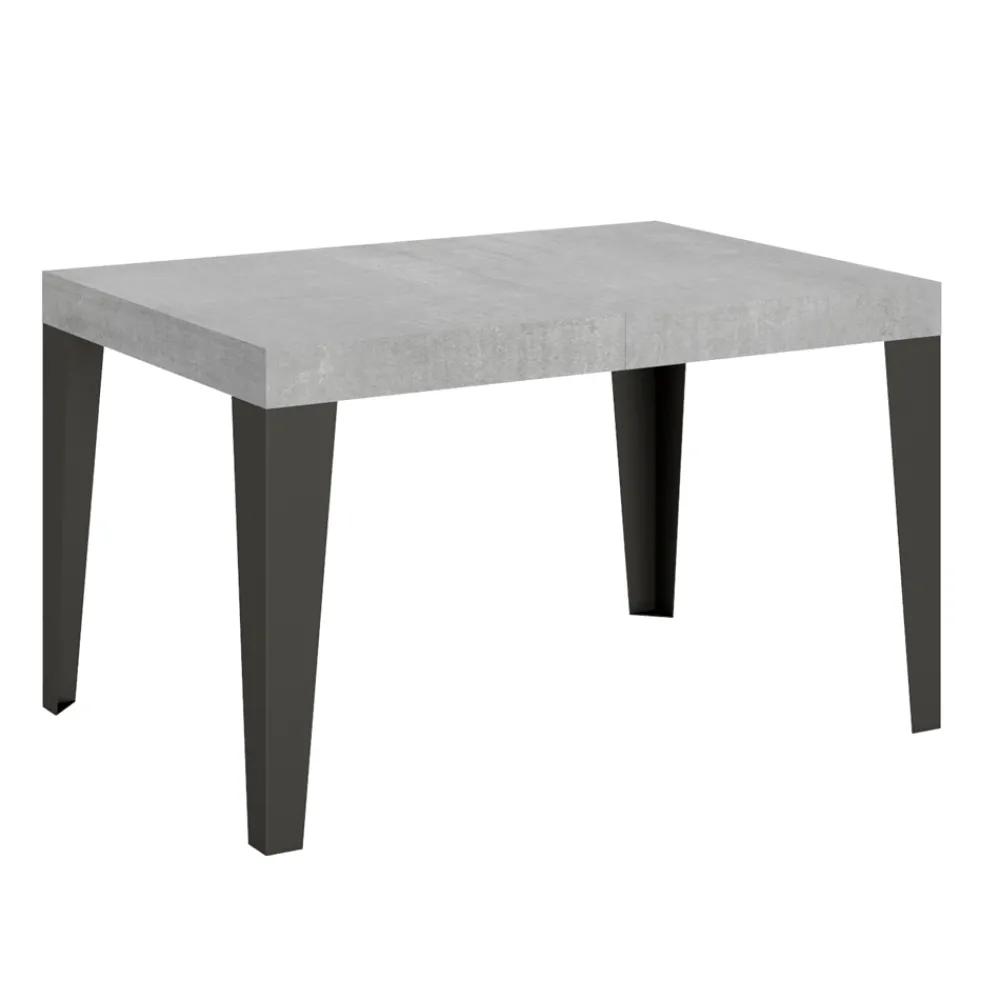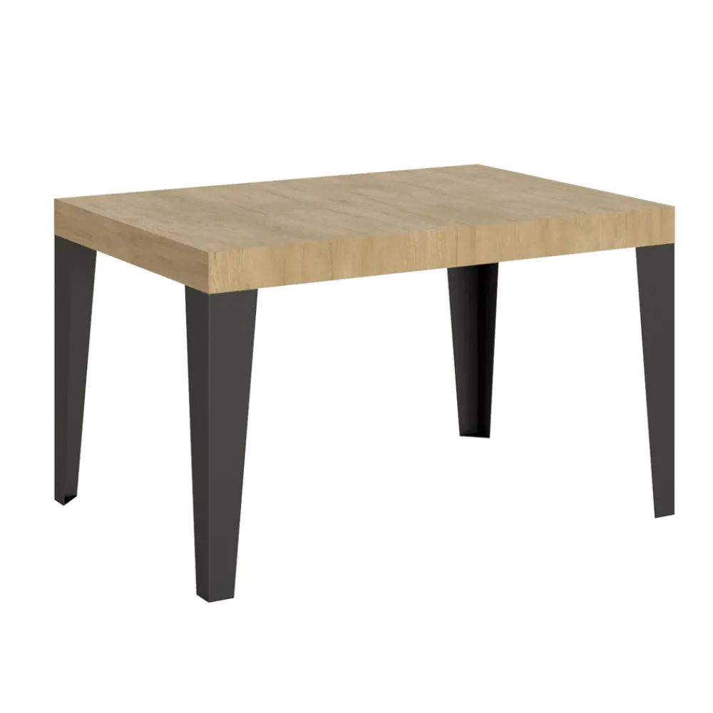 Ausziehbarer Esstisch mit einer Mikropartikel-Holz-gefalteten Platte und anthrazit lackierten Eisenbeinen, vollständig Made in Italy.