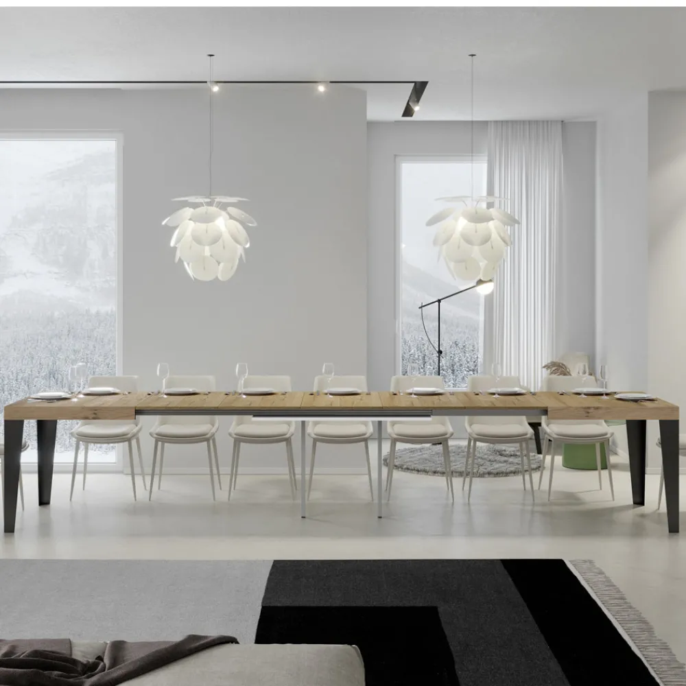 Ausziehbarer Tisch aus Mikropartikeln aus Holz und Eisen in Italien hergestellt