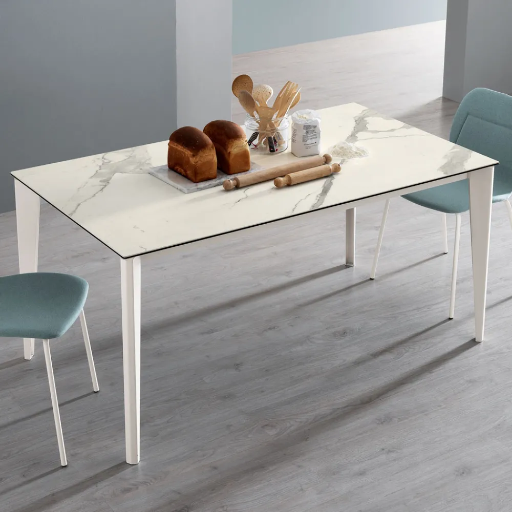 Ausziehbarer Esstisch aus Metall und Glaskeramik Made in Italy