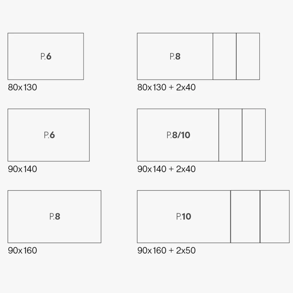 - Länge 130/210 cm x Tiefe 80 cm x Höhe 76 cm – 2 Verlängerungen 80×40 cm