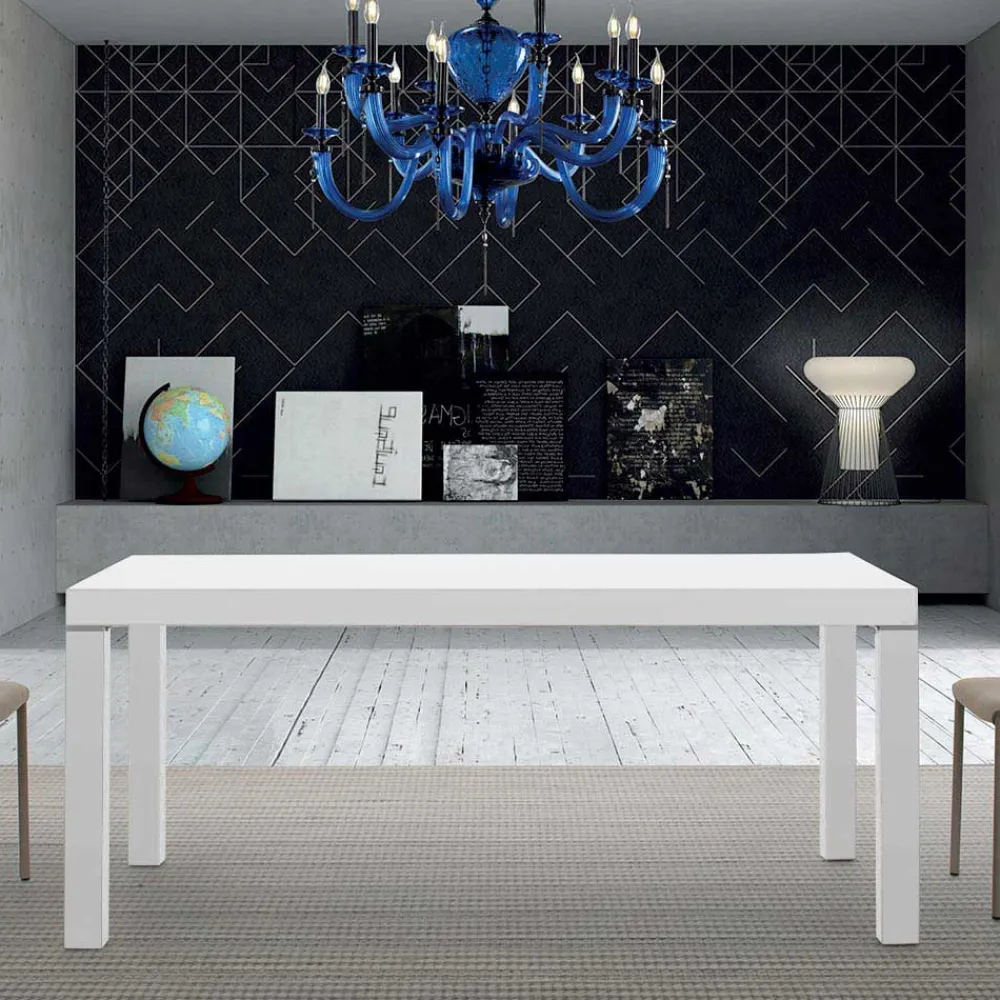 Ausziehbarer Esstisch bis zu 470 cm, handgefertigt in Italien, vollständig aus Melaminholz.