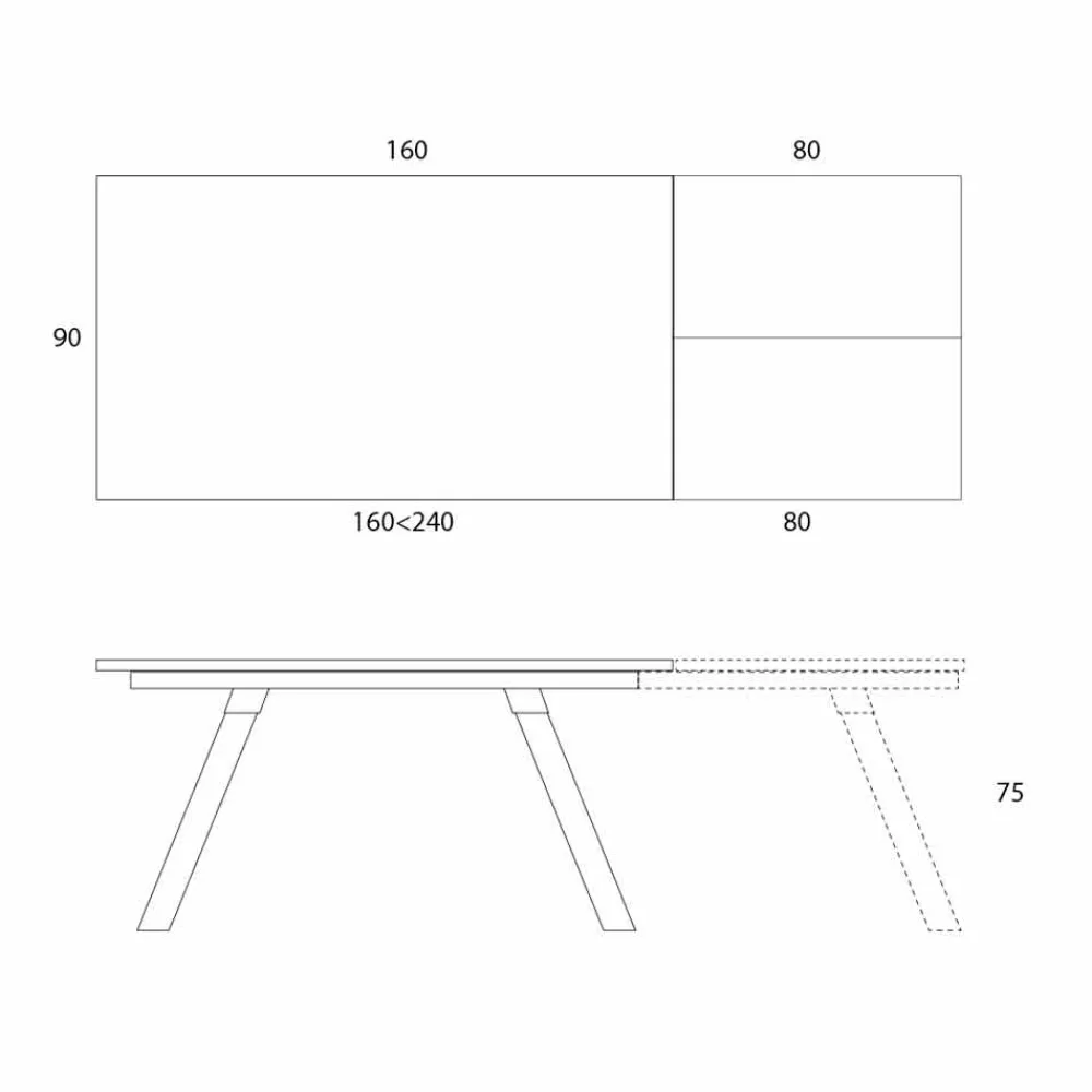 - L 160-240 x T 90 x H 75 cm