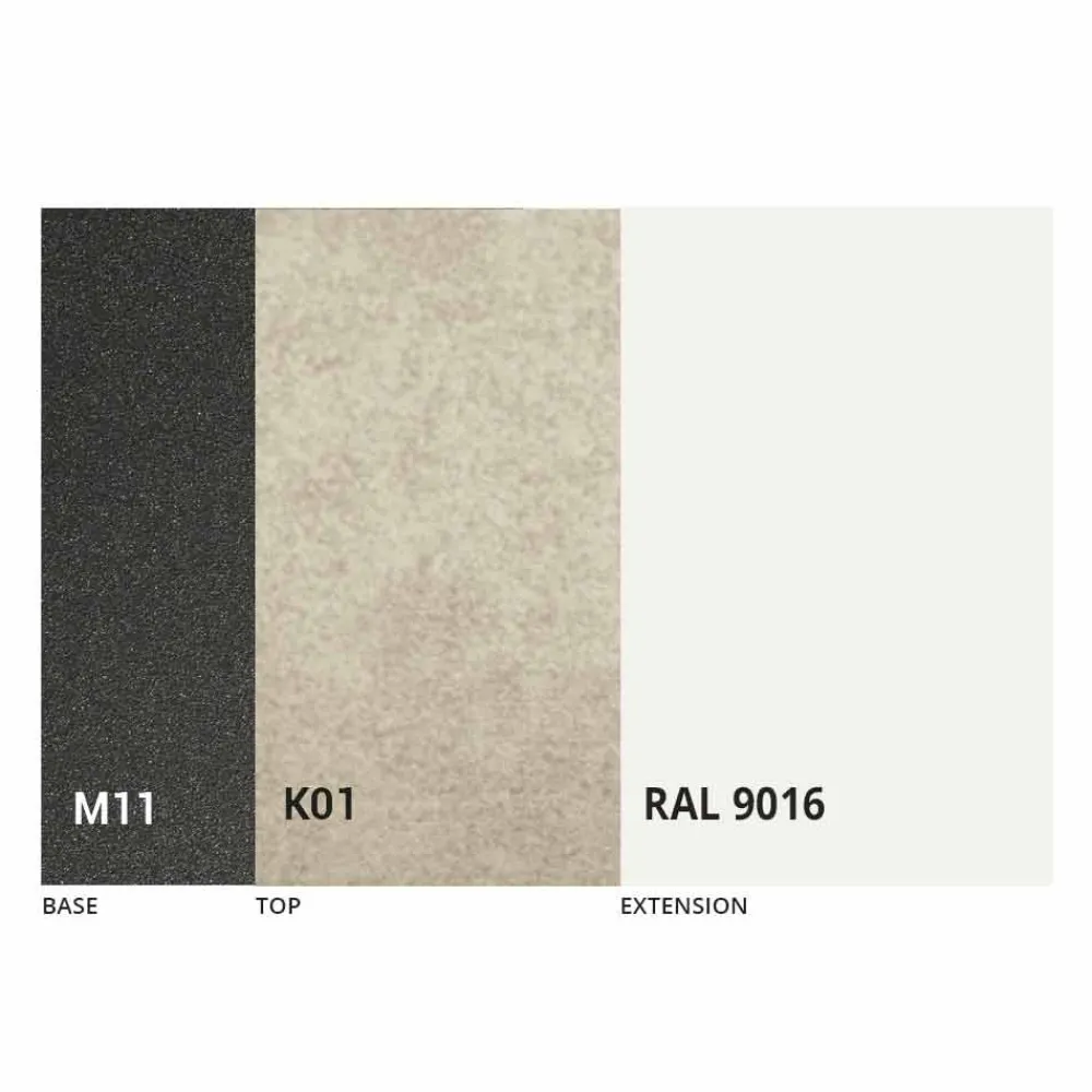 Die Platte und das Untergestell des Tisches können mit verschiedenen Materialien und Musteroberflächen oder RAL-Lackierungen individuell gestaltet werden. Für Informationen kontaktieren Sie uns bitte über das entsprechende Formular “ Informationen anfordern“ .