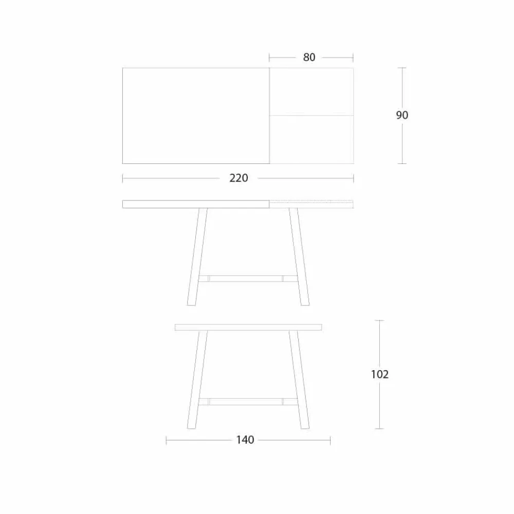 - L 140-220 x T 90 x H 102 cm