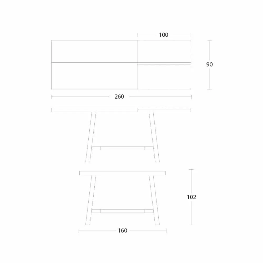 - B 160-260 x T 90 x H 102 cm