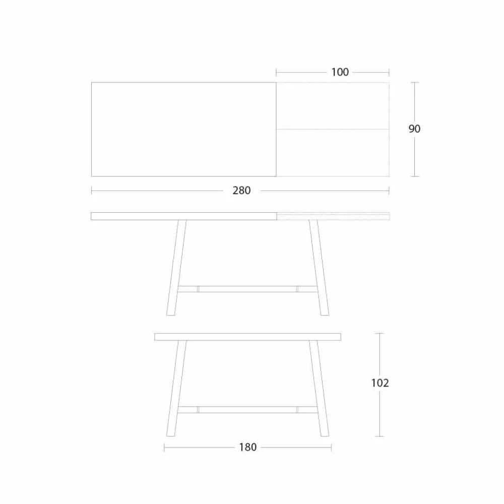 - B 180-280 x B 90 x H 102 cm