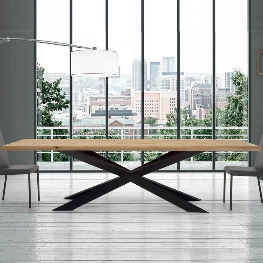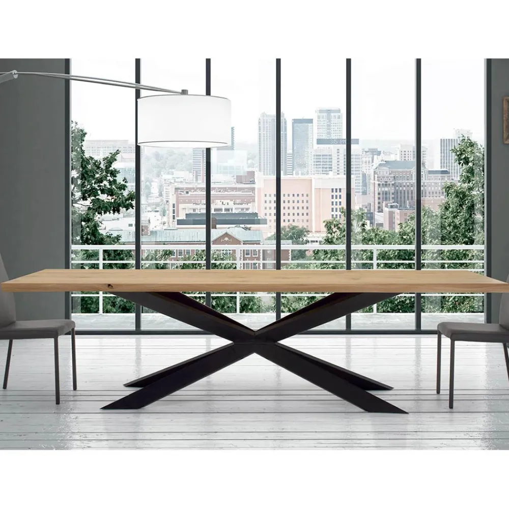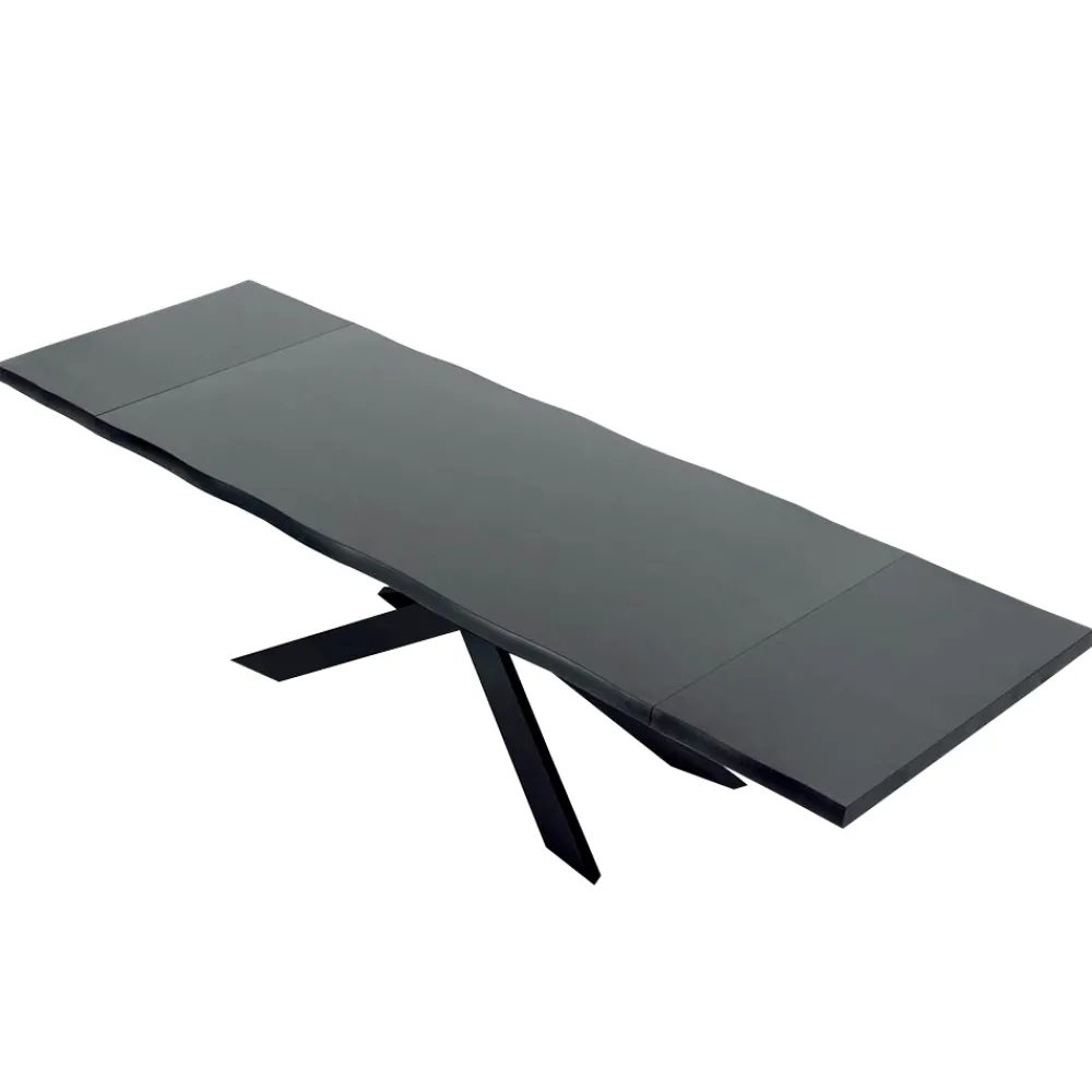 Ausziehbarer Esstisch bis 300 cm aus furniertem Holz und schwarzem Stahlgestell, hergestellt in Italien.