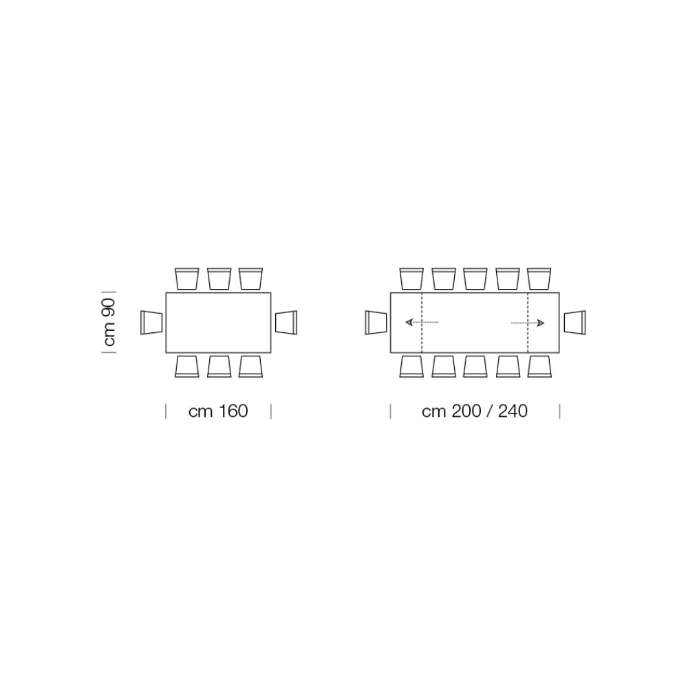 - L 160 (240) x T 90 x H 76,5 cm 12-Sitzer ausziehbar mit 2 externen 40-cm-Verlängerungen;