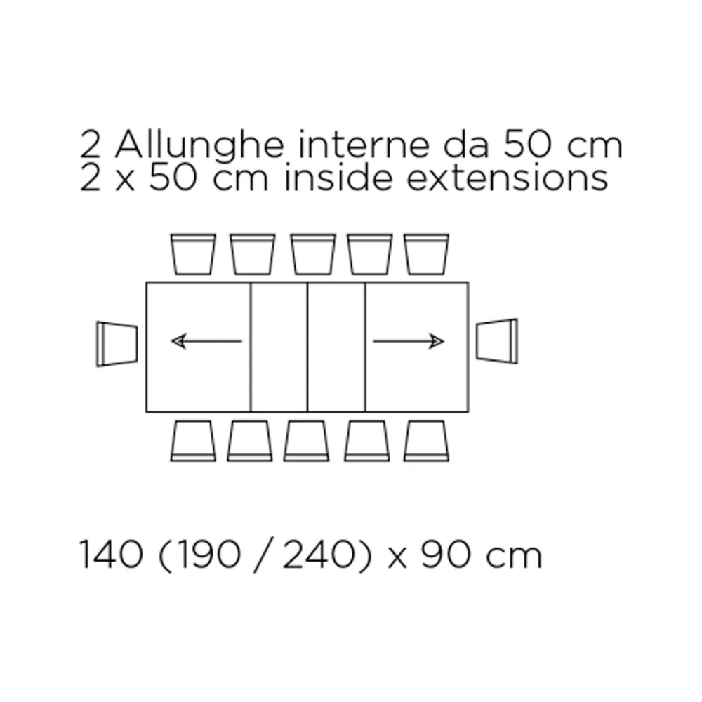 - Länge 140/240 cm x Tiefe 90 cm x Höhe 75,8 cm