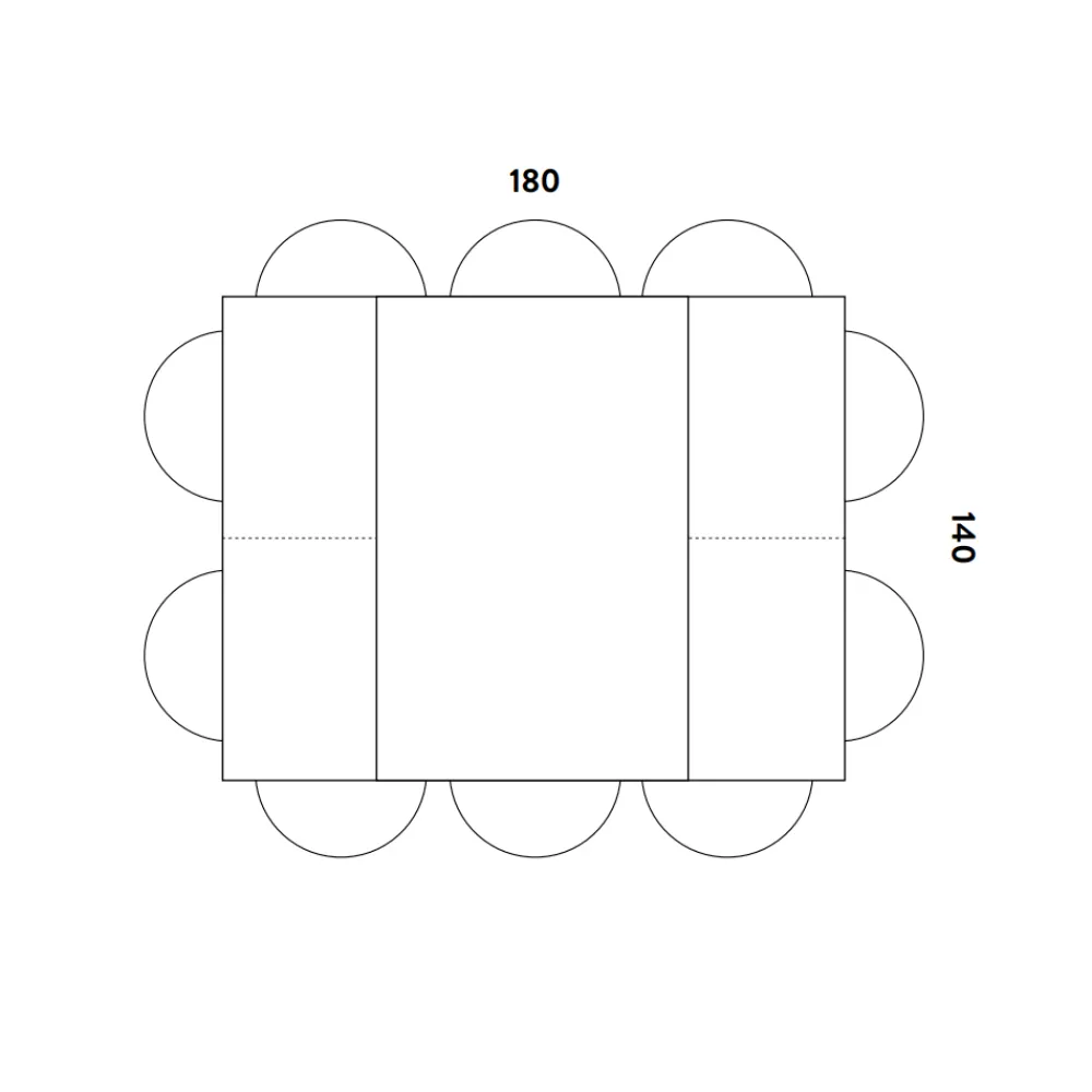 - geöffnet: Länge: 180 cm x Tiefe: 140 cm x Höhe: 76 cm