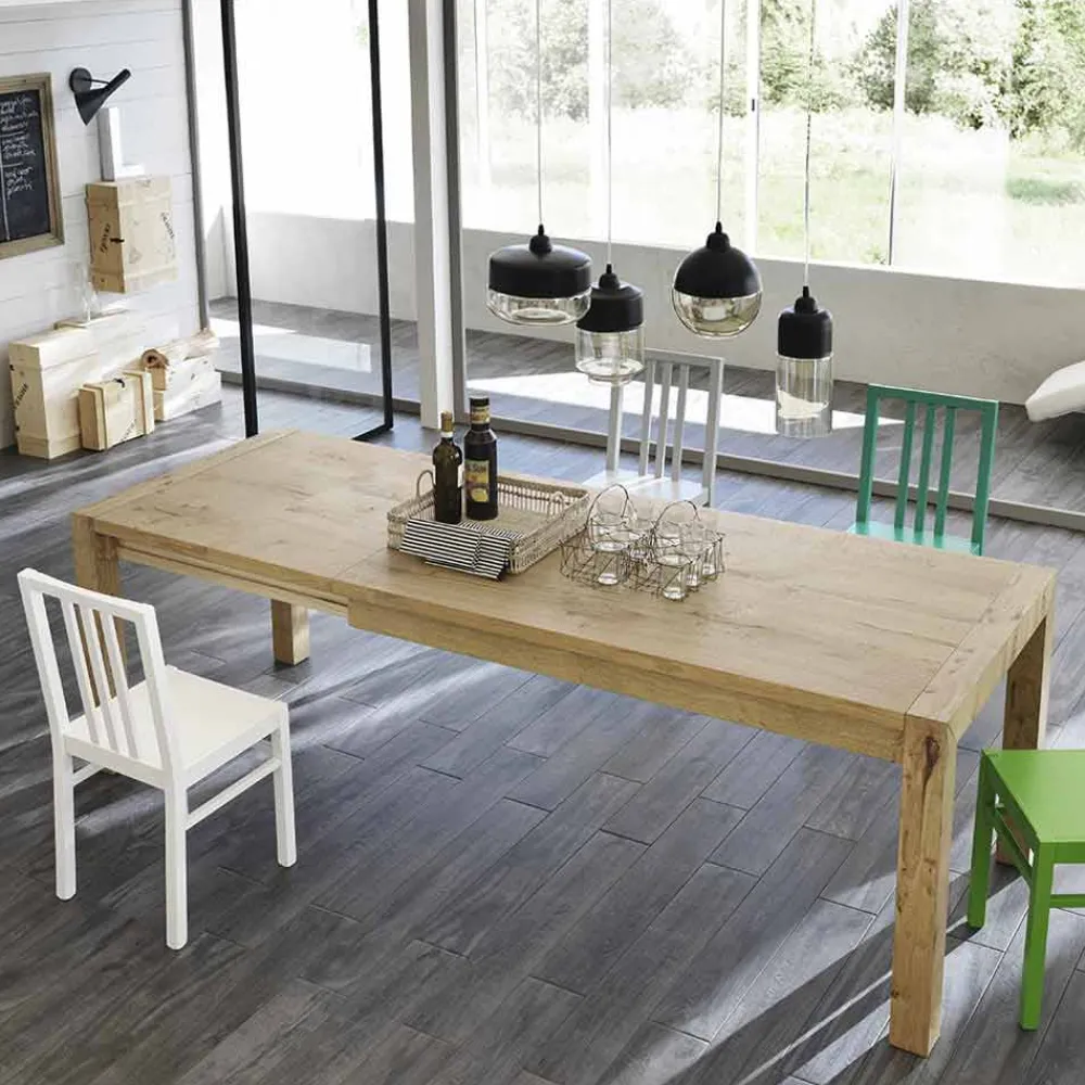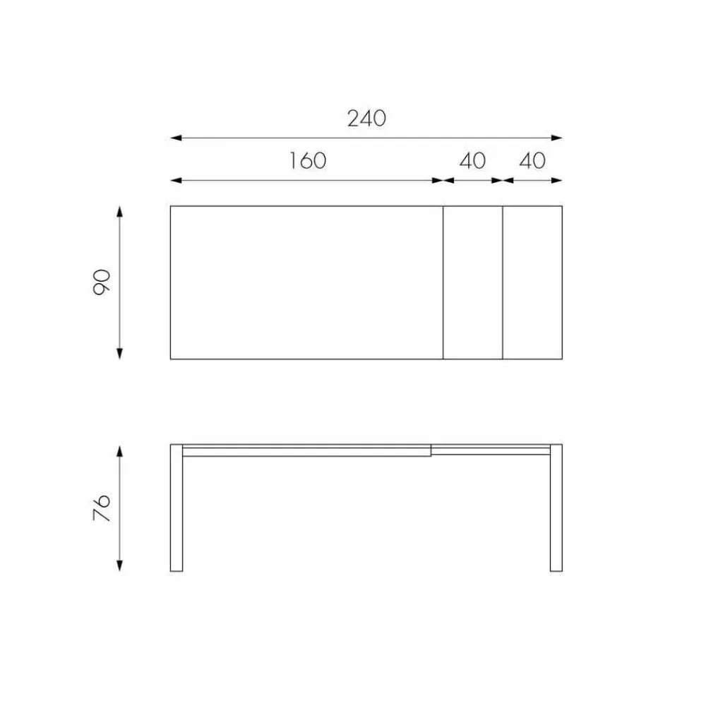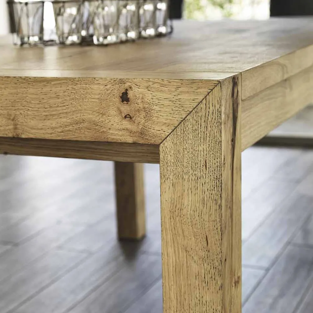 Ciro ist ein ausziehbarer Tisch, der sich durch ein modernes Design auszeichnet. Es besteht komplett aus rohem Eichenfurnier. Mit den praktischen Erweiterungen können Sie den Tisch auf bis zu 240 cm verlängern und im Tisch aufbewahren.