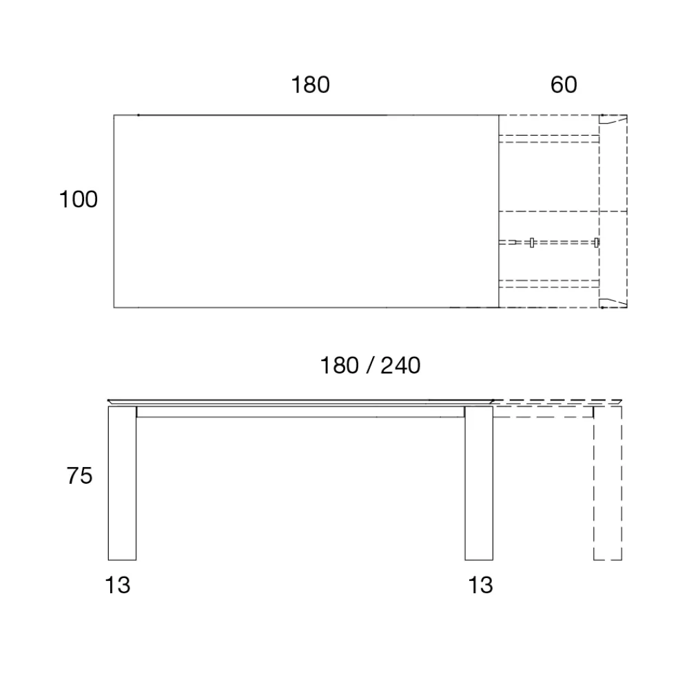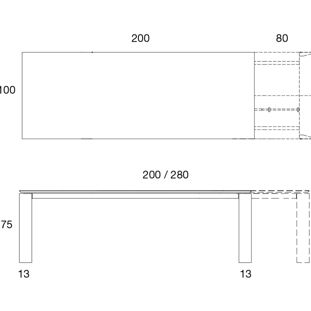 Seine Besonderheit wird durch die Struktur mit schlanken Beinen gegeben, die das dünne ausziehbare Oberteil tragen, für ein leichtes, aber widerstandsfähiges Design mit geschwungenen und eleganten Linien.