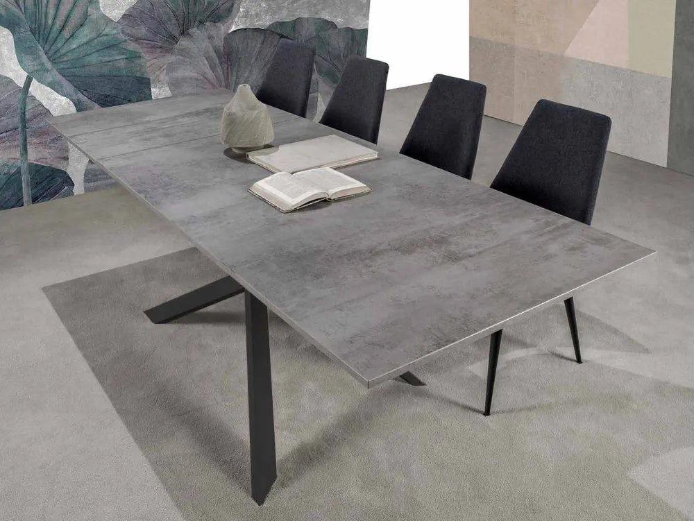 - schwarze Metallstruktur und klassische Betonplatte;