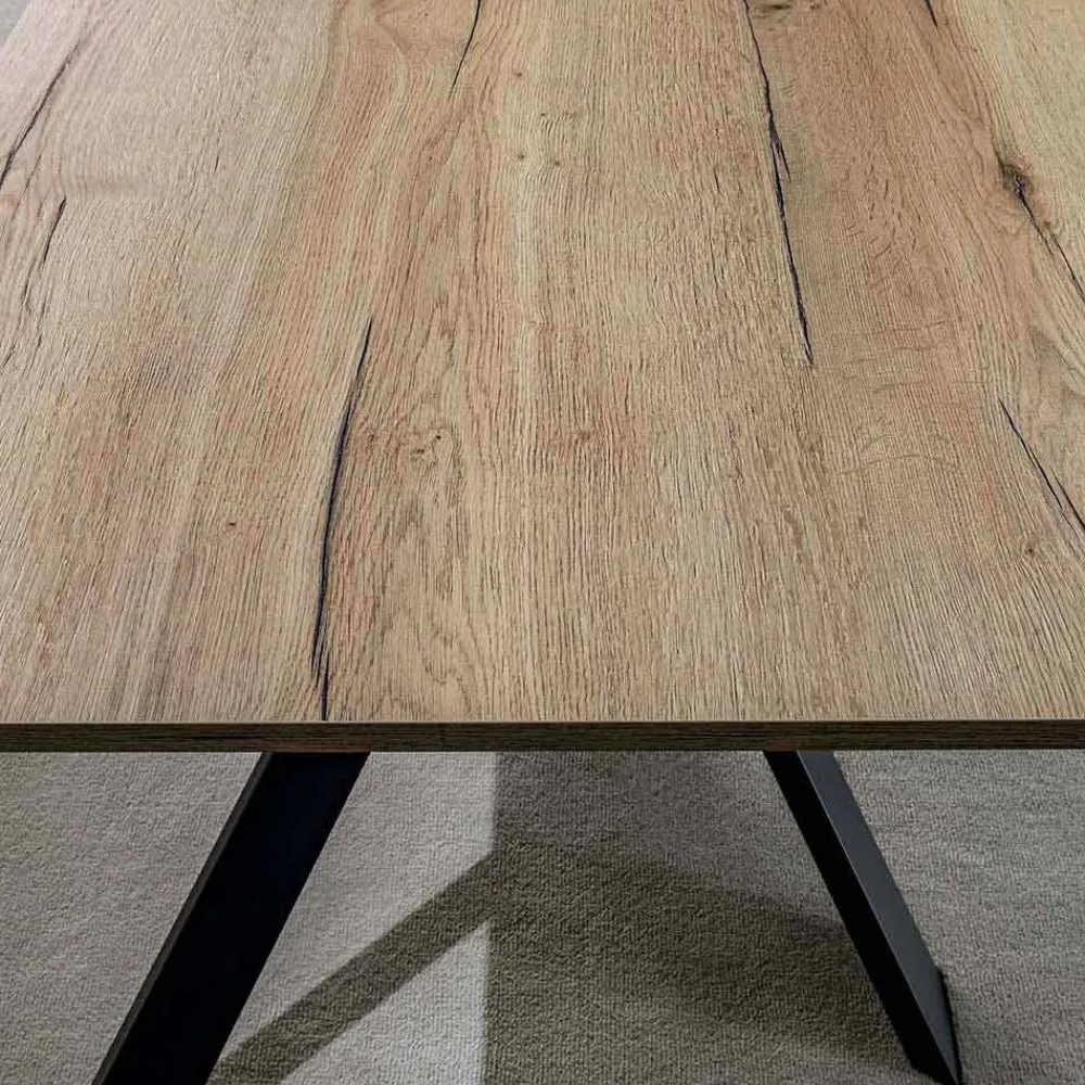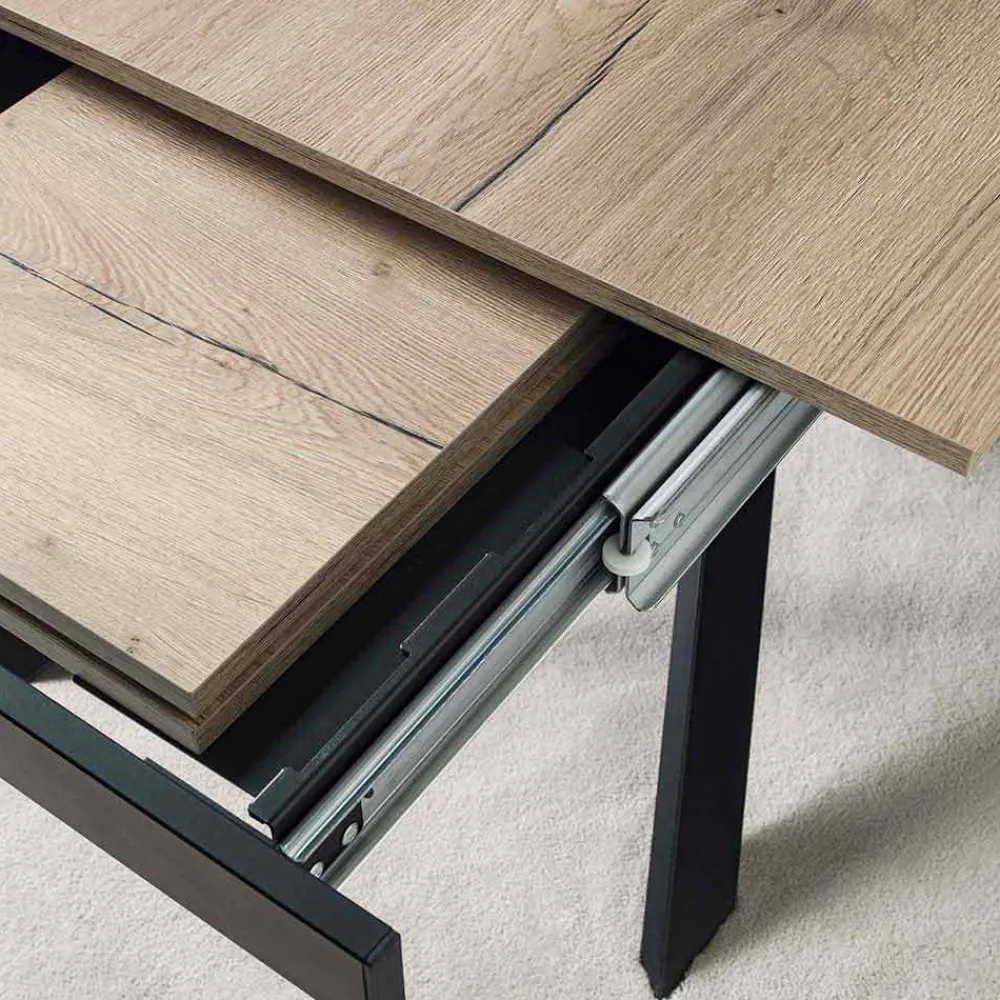 - Struktur aus schwarzem Metall und Platte aus natürlicher Eiche.