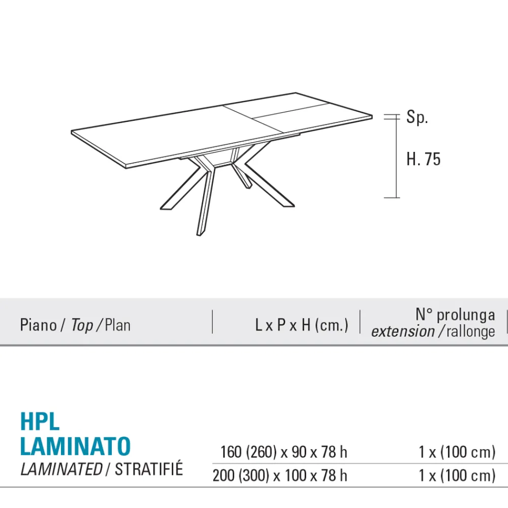 Entschlossen, elegant und mit einem beeindruckenden Design: Dieser ausziehbare Tisch aus HPL und Metall ist die ideale Wahl für alle, die modernes Design und intelligente Funktionalität in einem einzigen Möbelstück suchen.