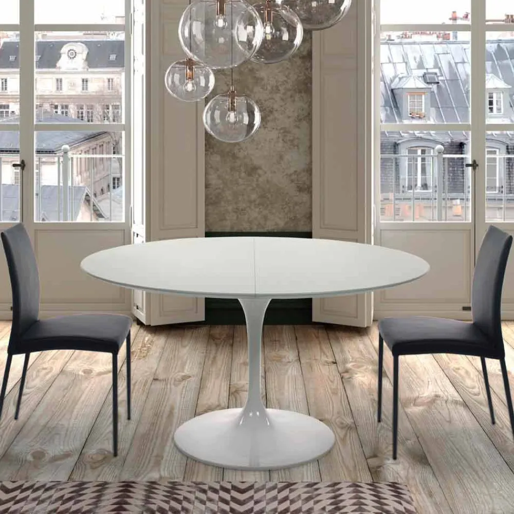 Der runde ausziehbare Tisch Dollars zeichnet sich durch ein leichtes und geschmackvolles Design aus, das ihn zu einem ausgesprochen originellen Einrichtungsaccessoire macht.